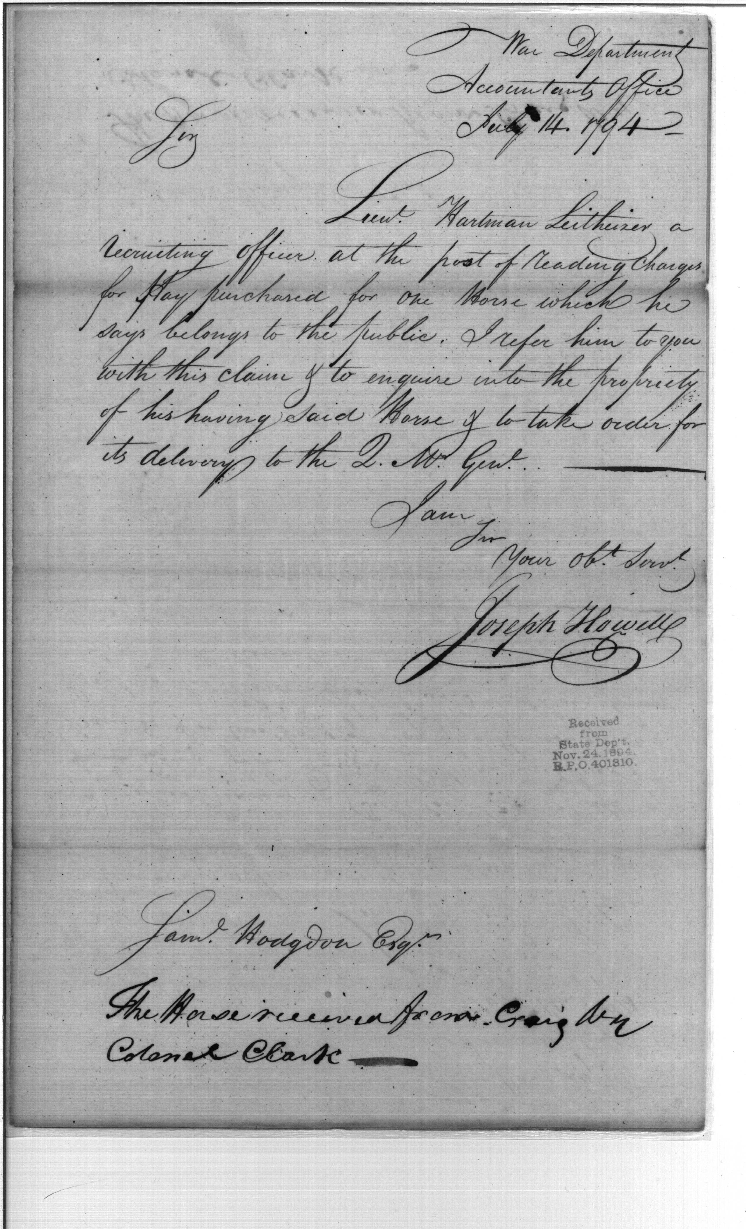 Post Revolutionary War Papers, 1784-1815. (RG94)
