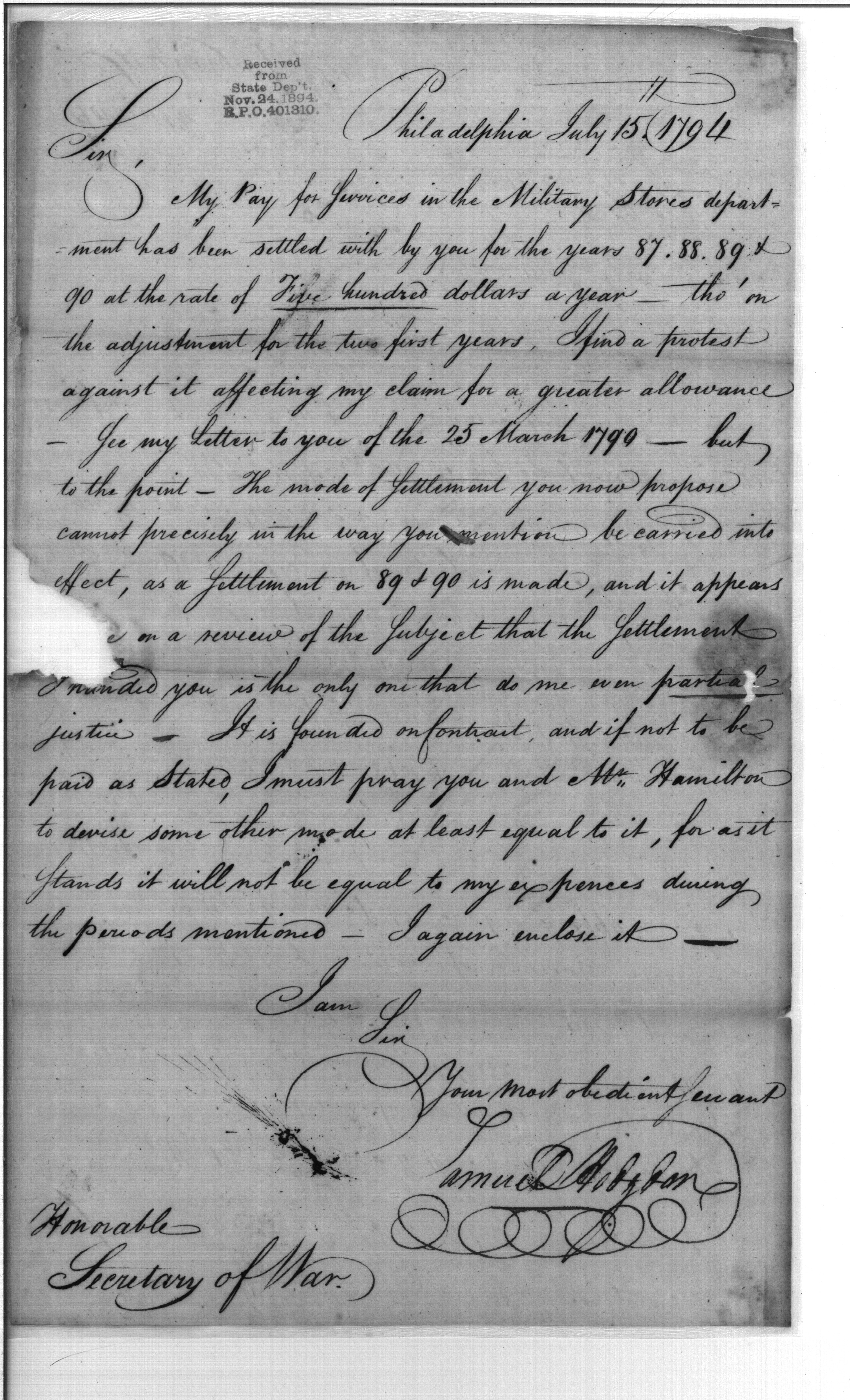 Post Revolutionary War Papers, 1784-1815. (RG94)