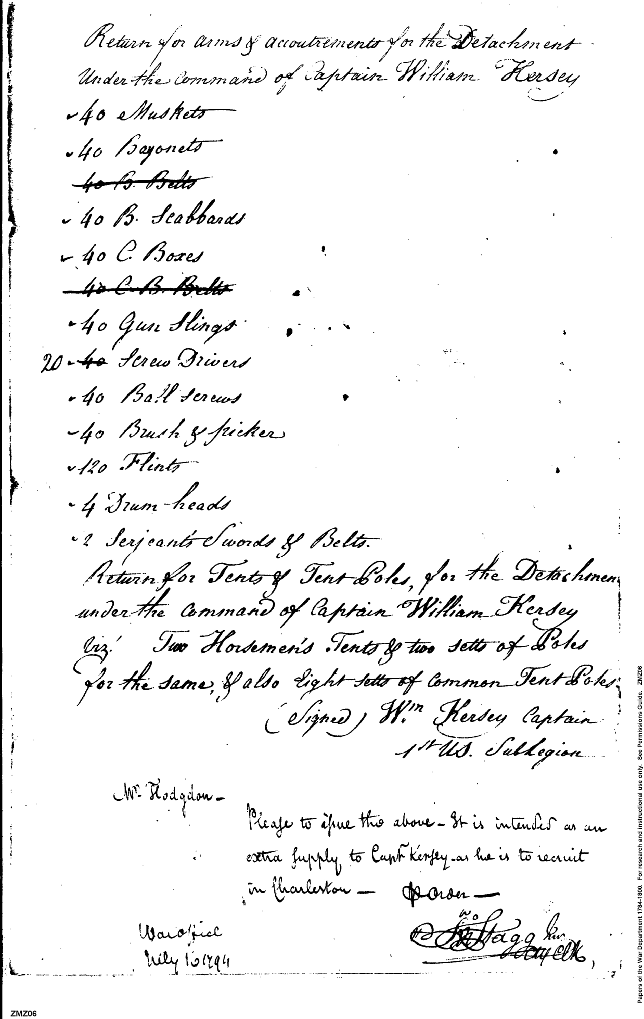- Document: Arms & Accoutrements for Kersey's Detachment