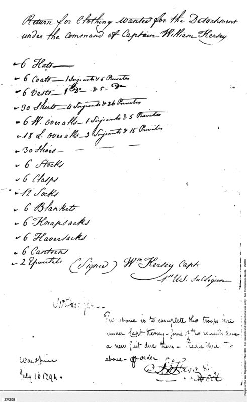 Document ViewerReturn of Clothing for Kersey's Detachment