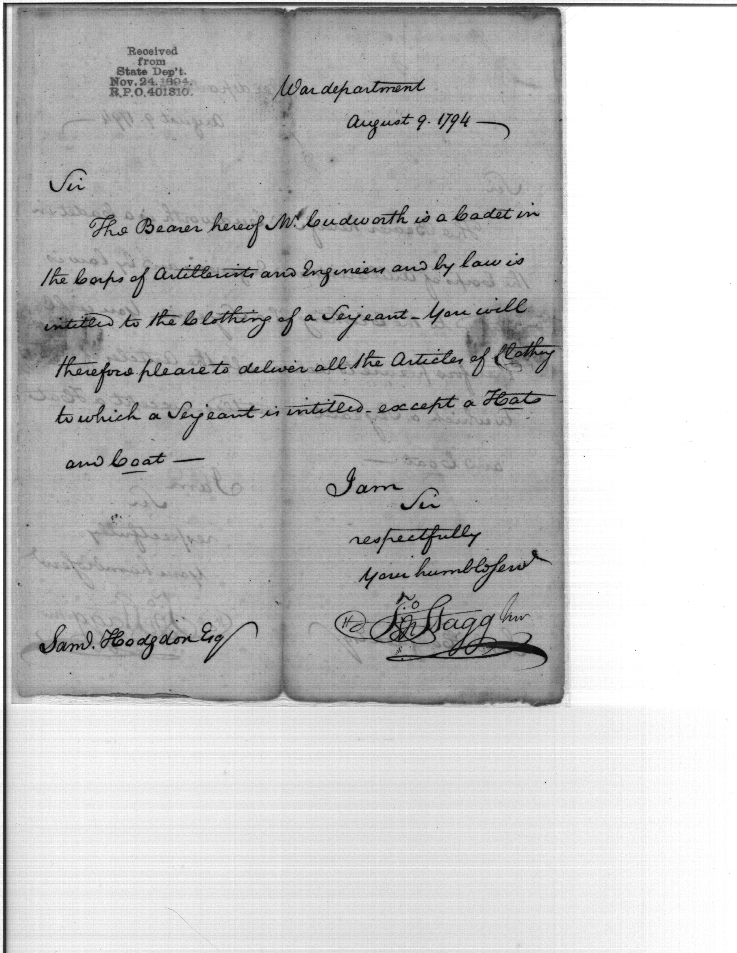 Clothing for Mr. Cudworth