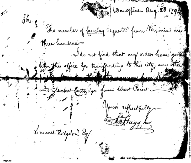 - In source: Collection: Post Revolutionary War Papers, 1784-1815. (RG94)