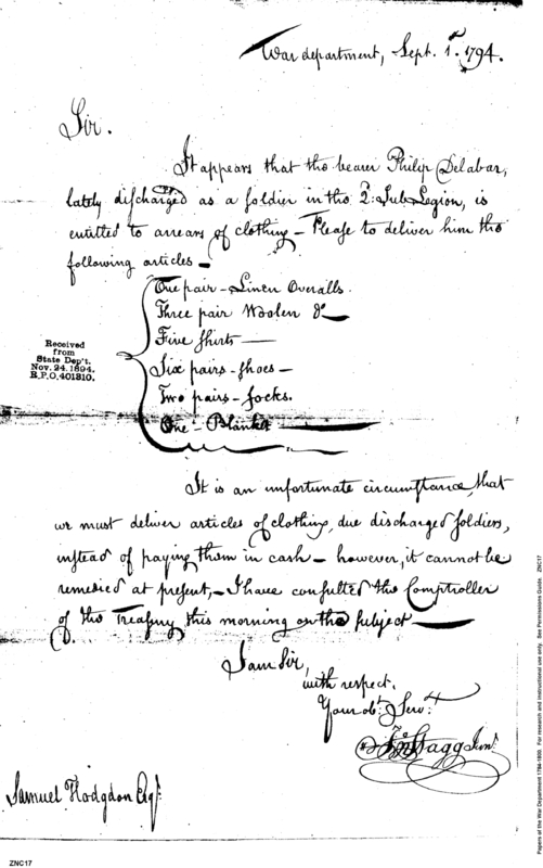 - In source: Collection: Post Revolutionary War Papers, 1784-1815. (RG94)