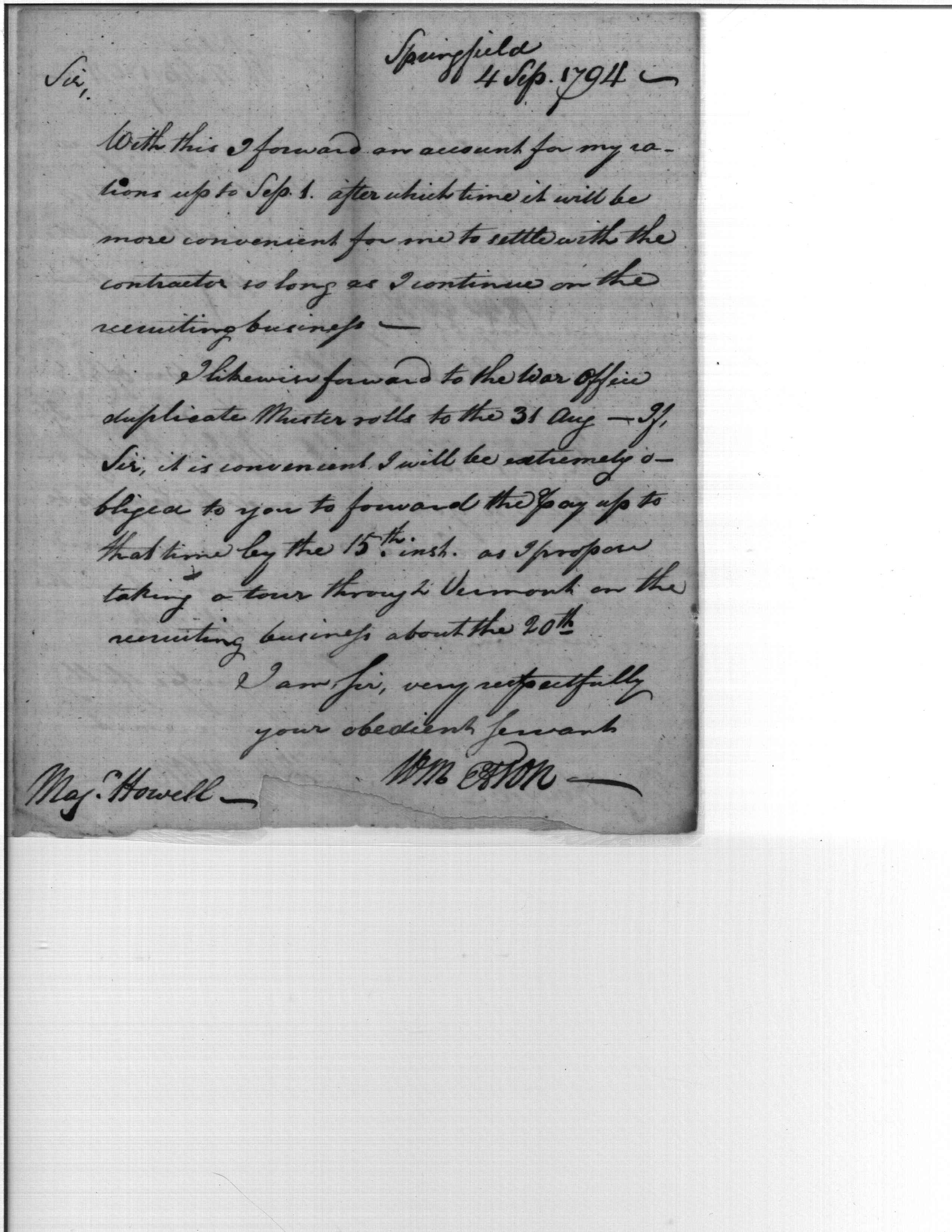 - Document: Forwarding of accounts and muster rolls