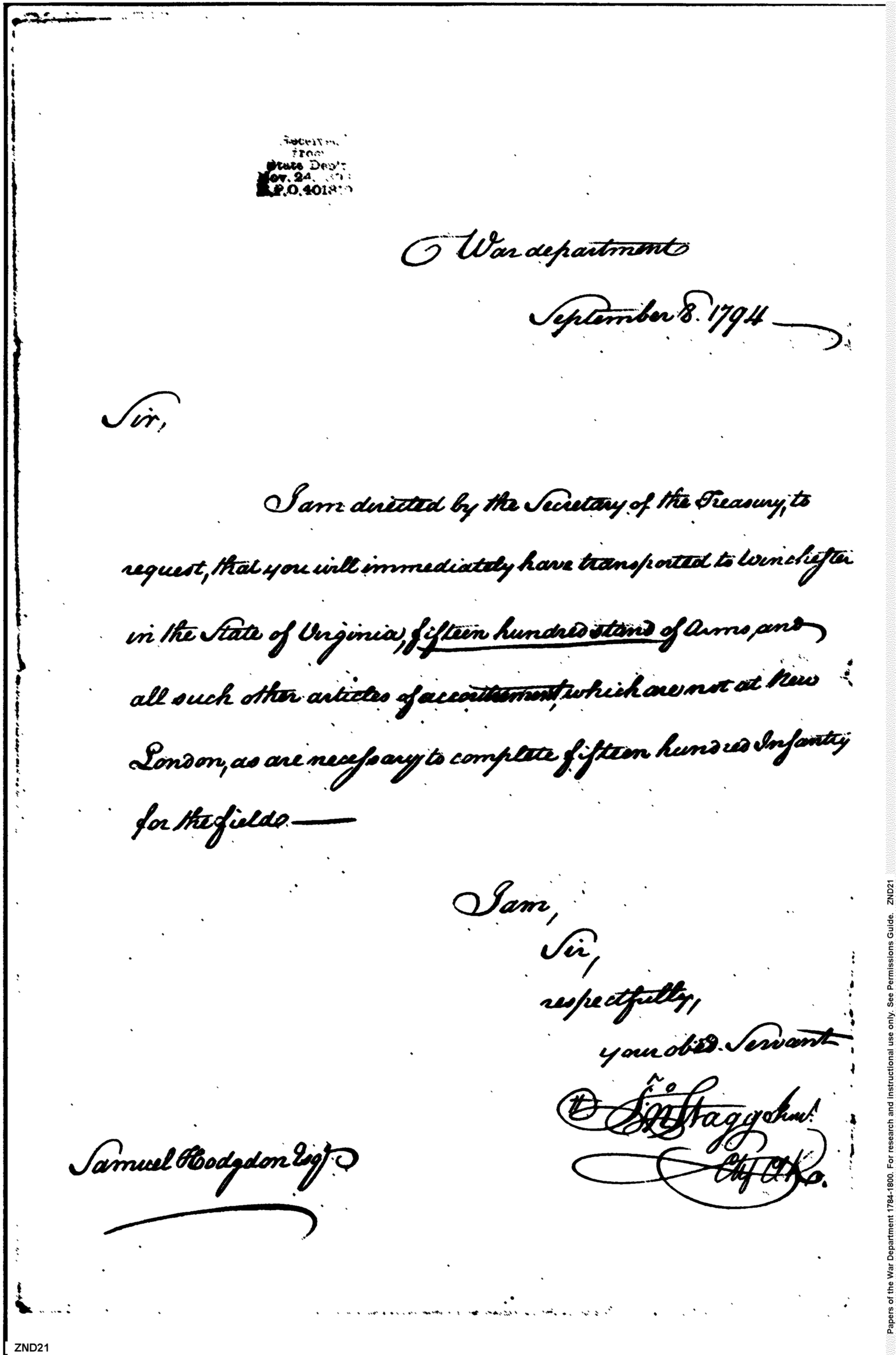 - In source: Collection: Post Revolutionary War Papers, 1784-1815. (RG94)