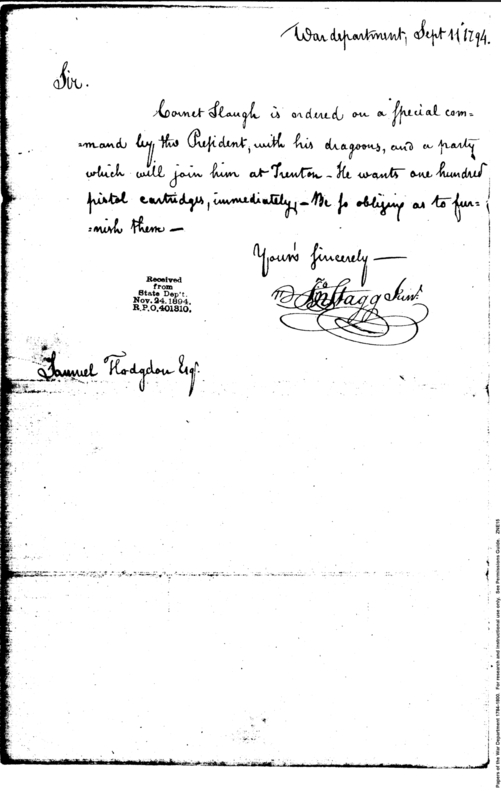 - In source: Collection: Post Revolutionary War Papers, 1784-1815. (RG94)