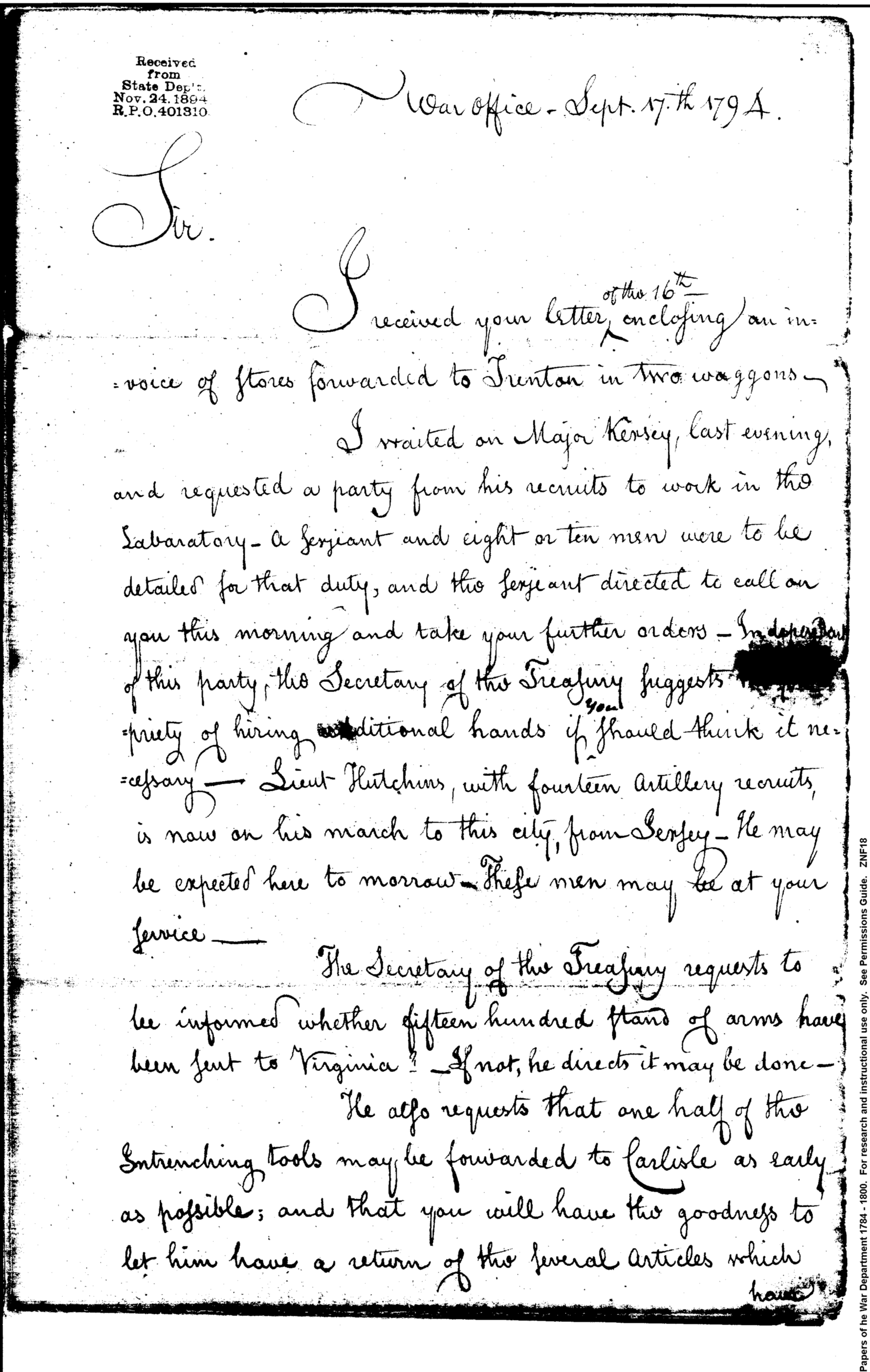 - In source: Collection: Post Revolutionary War Papers, 1784-1815. (RG94)