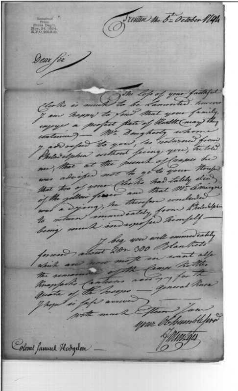 Post Revolutionary War Papers, 1784-1815. (RG94)
