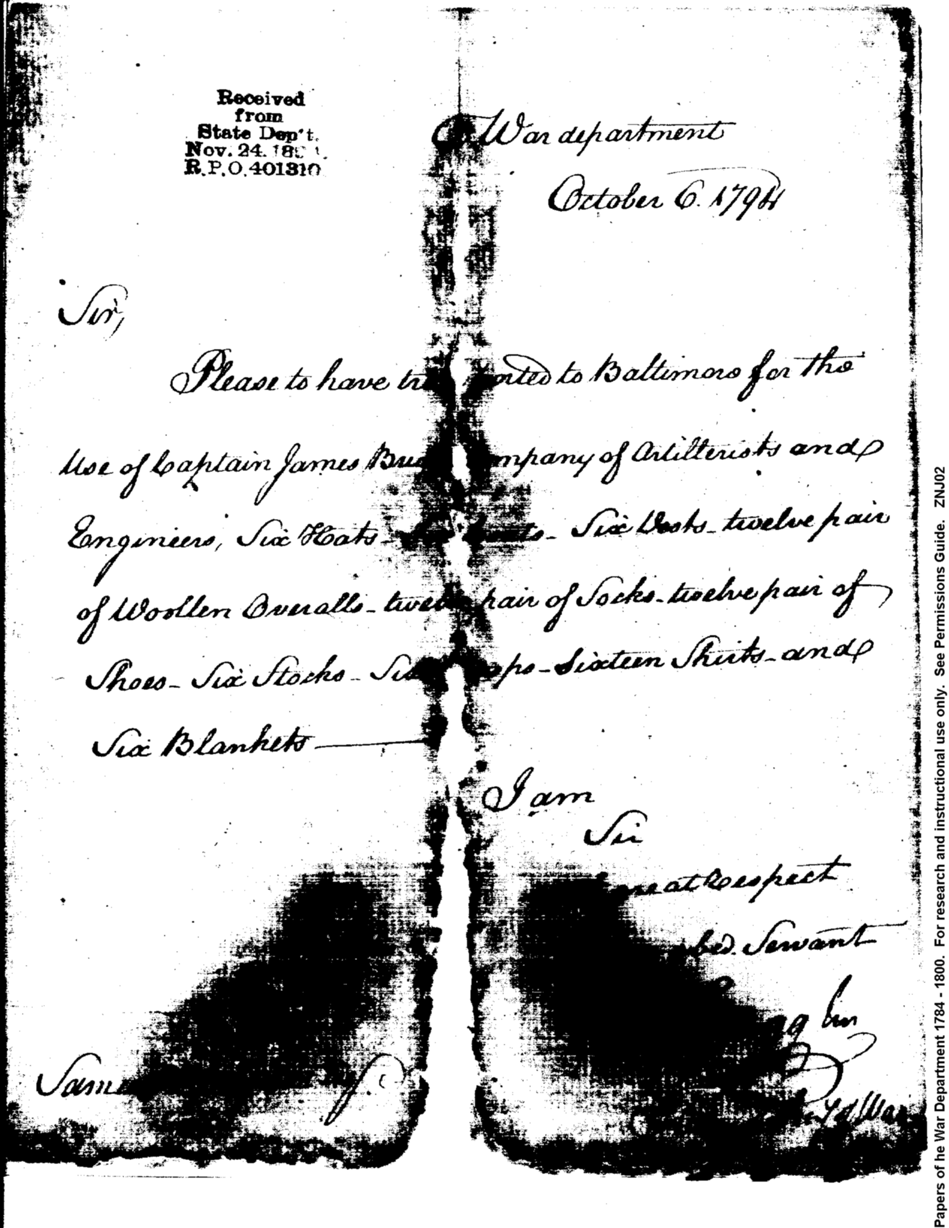 - In source: Collection: Post Revolutionary War Papers, 1784-1815. (RG94)