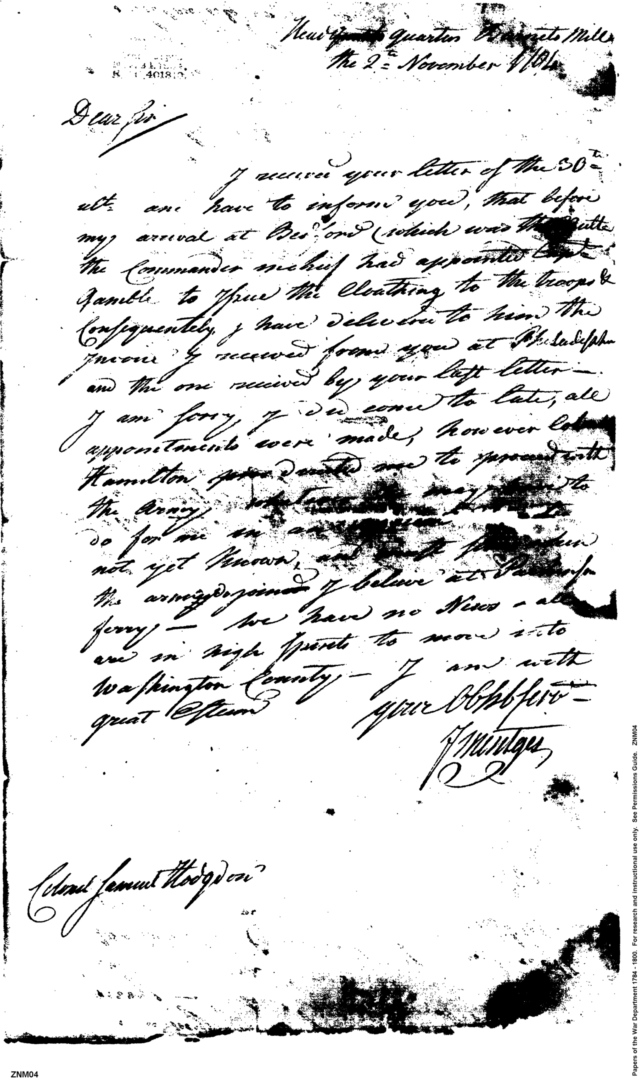 Post Revolutionary War Papers, 1784-1815. (RG94)