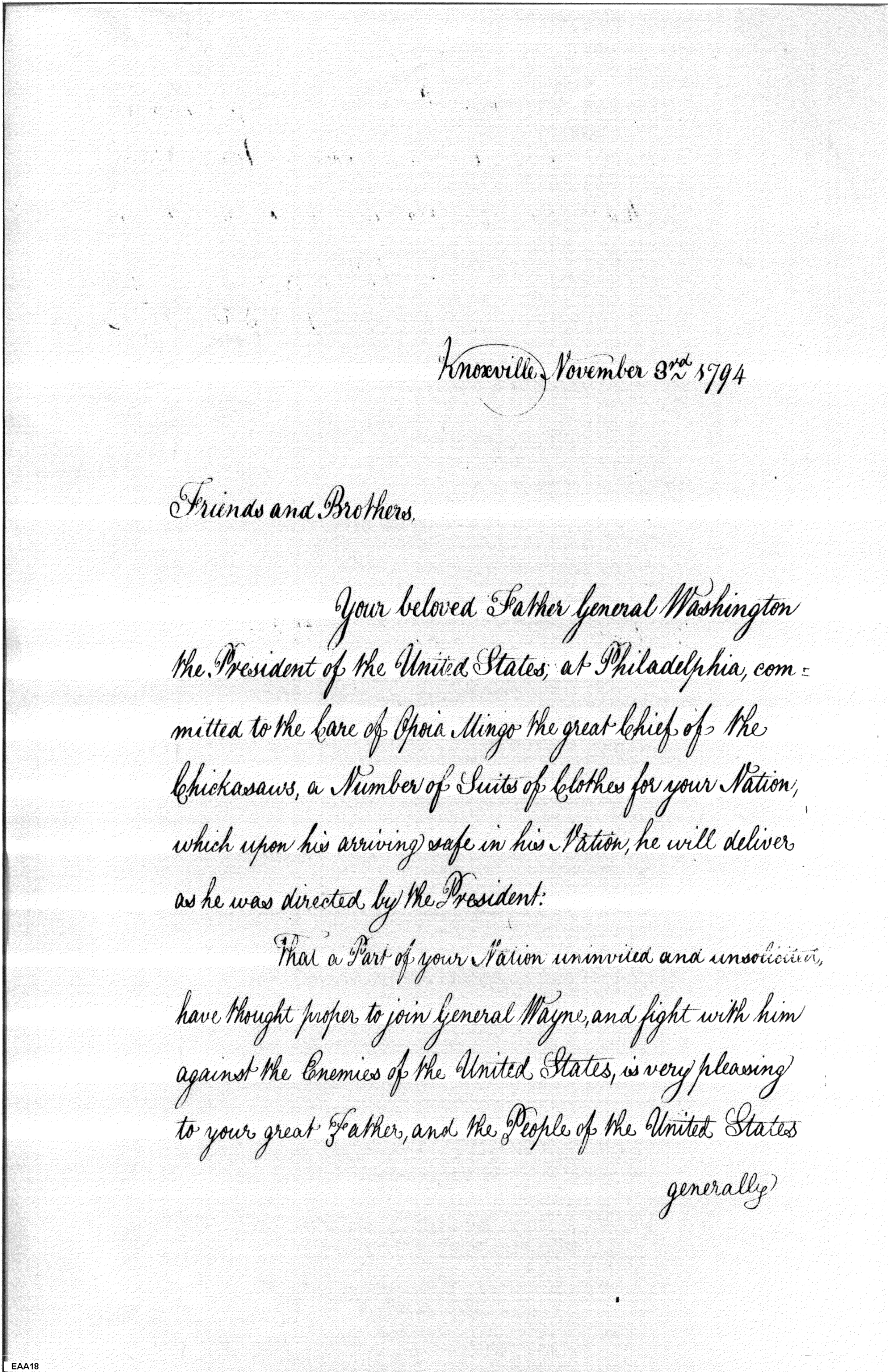 Document ViewerNotification of Clothing Delivery to the Chickasaws
