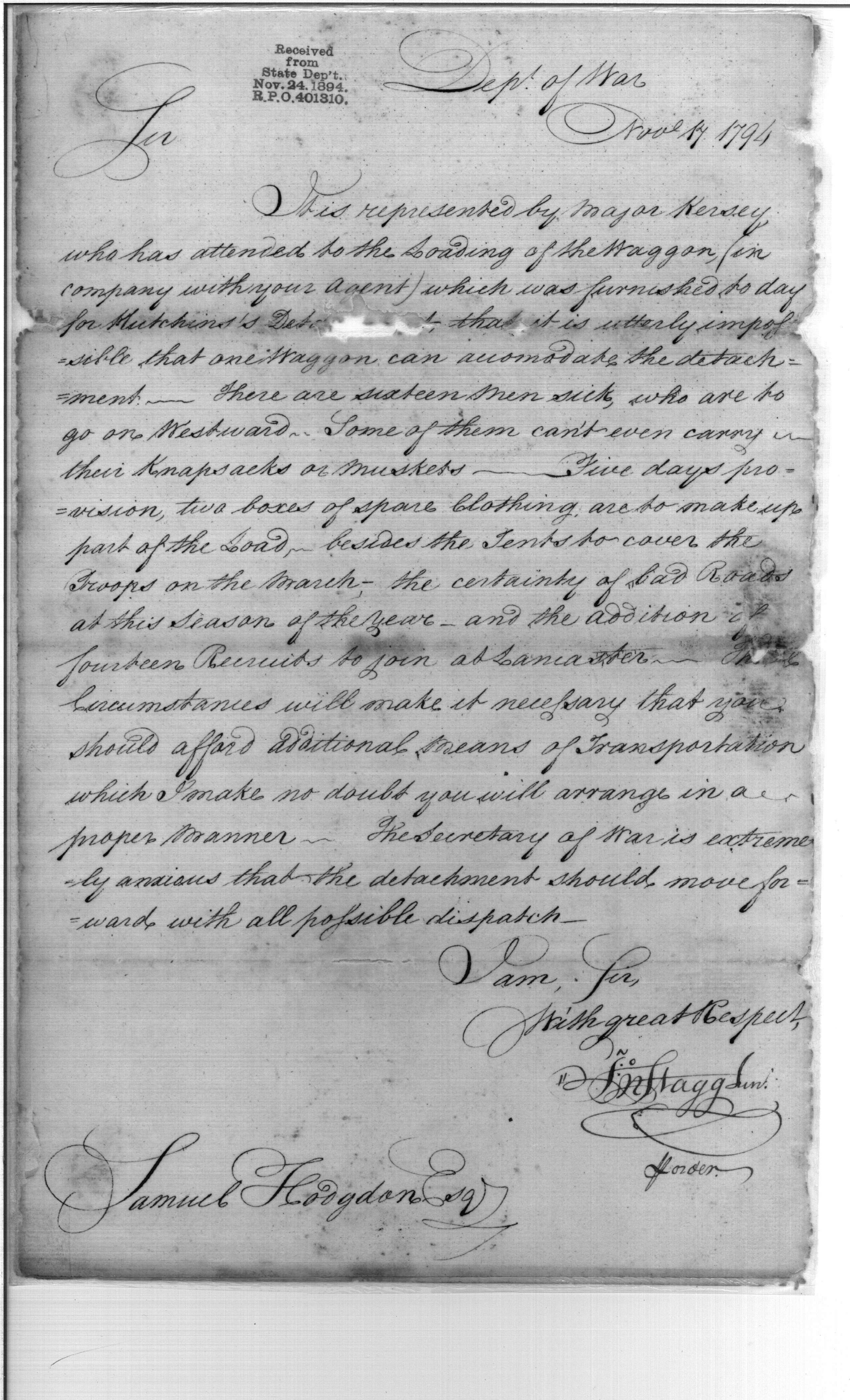 - Document: Providing Transportation for Hutchins' Detachment