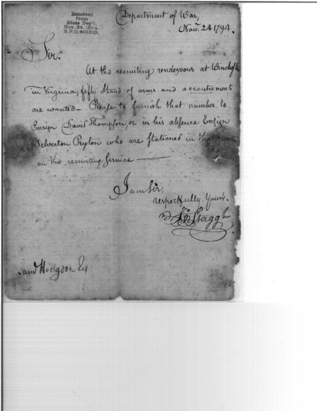 - In source: Collection: Post Revolutionary War Papers, 1784-1815. (RG94)
