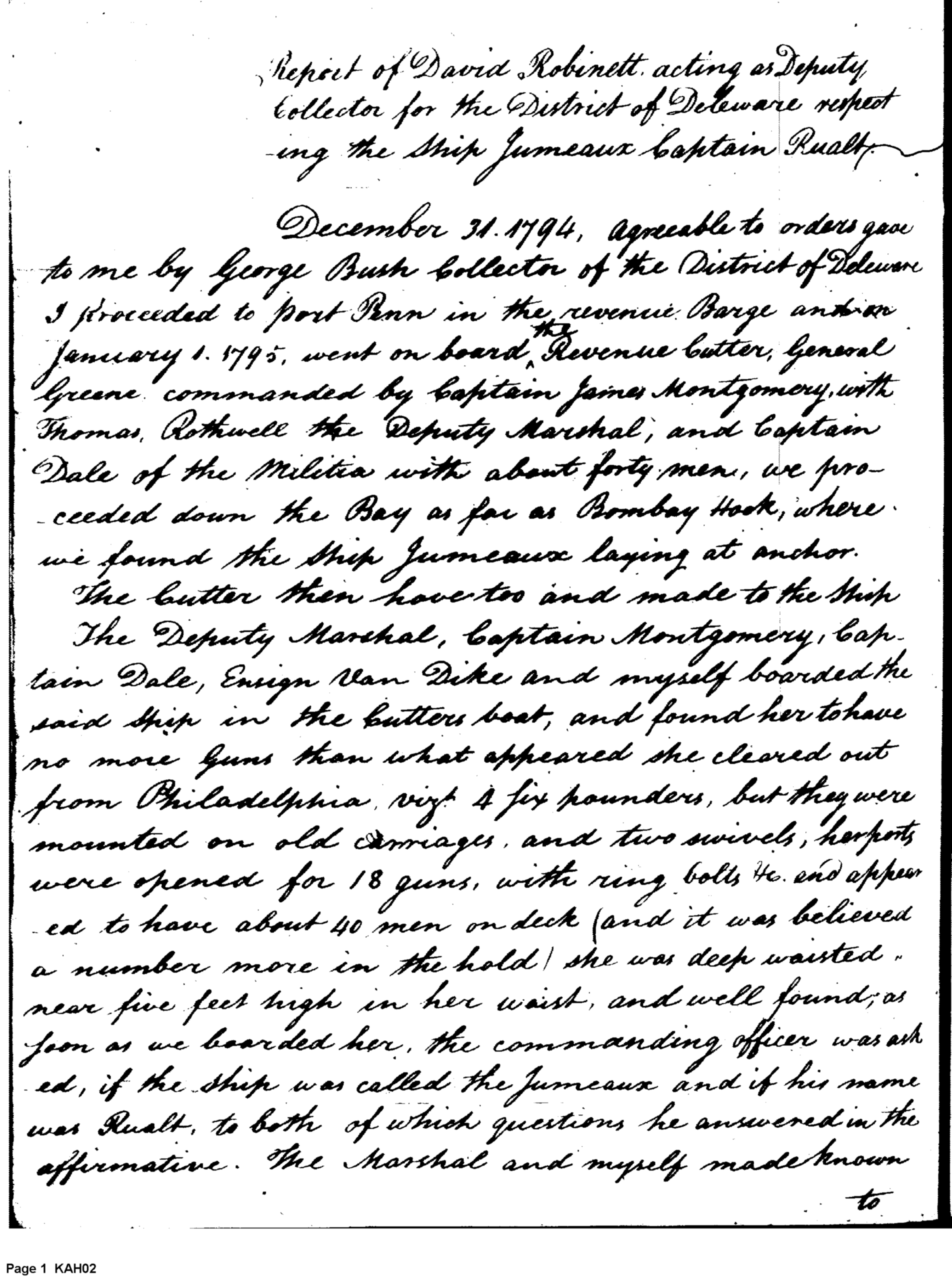 Document ViewerReport regarding the boarding of the French Ship Jumeaux