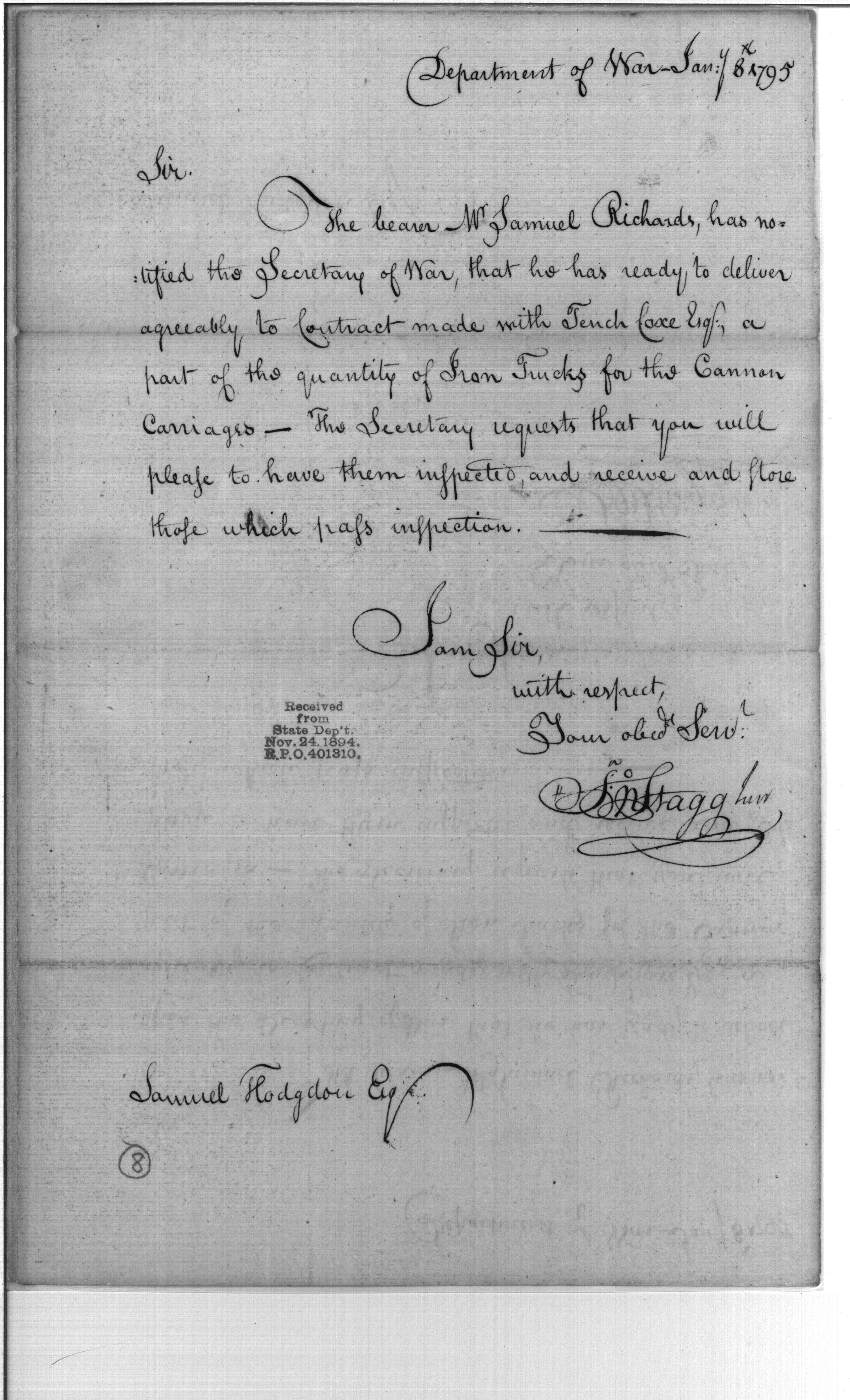 - In source: Collection: Post Revolutionary War Papers, 1784-1815. (RG94)