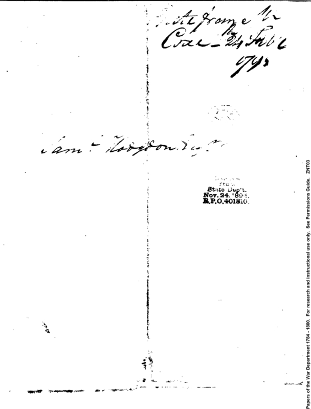 Post Revolutionary War Papers, 1784-1815. (RG94)