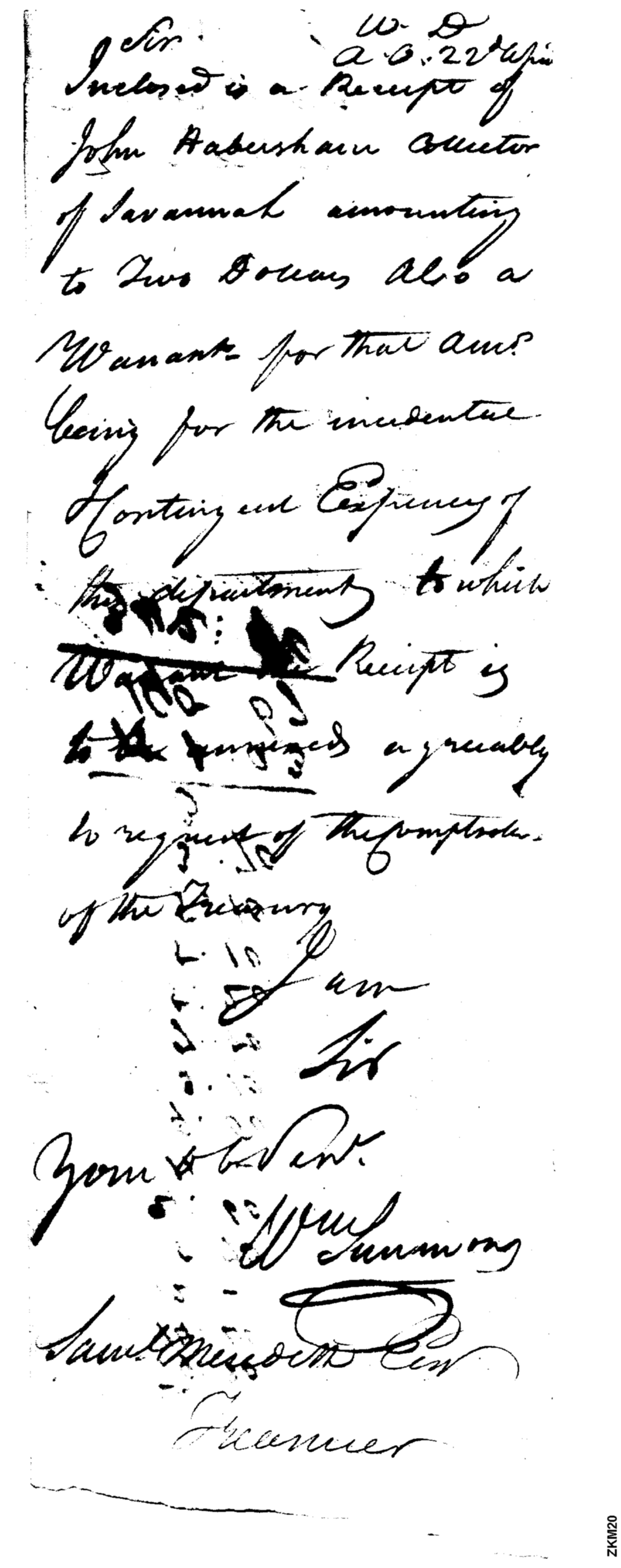 - Document: Receipt of John Habersham, Collector at Savannah