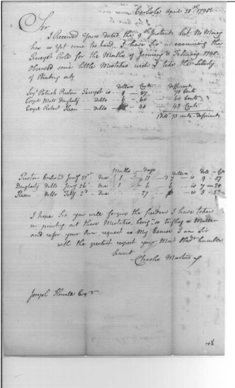 - Document: Mistakes on the Receipt Rolls for January and February 1795