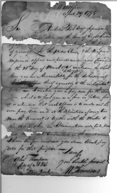 - Document: Pay of Lieut. Elmer, Capt. Thompson & the Men Under His Command