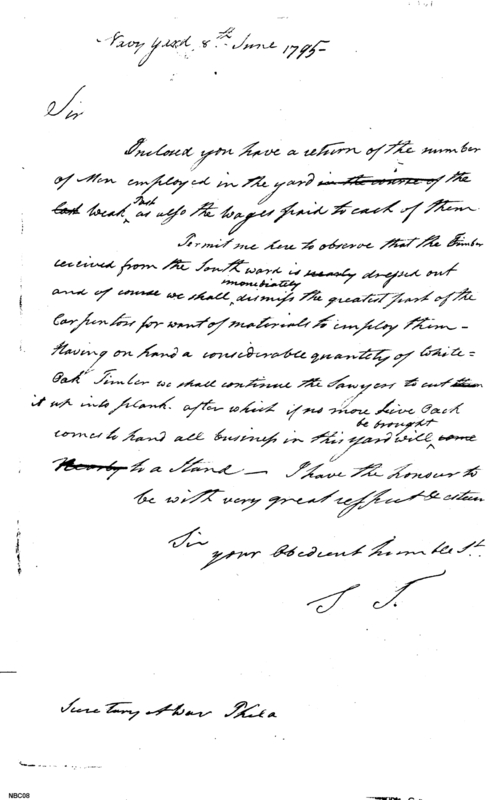 - Document: Weekly return of men employed at the New York naval yard; warning of cessation of work if new timber does not arrive