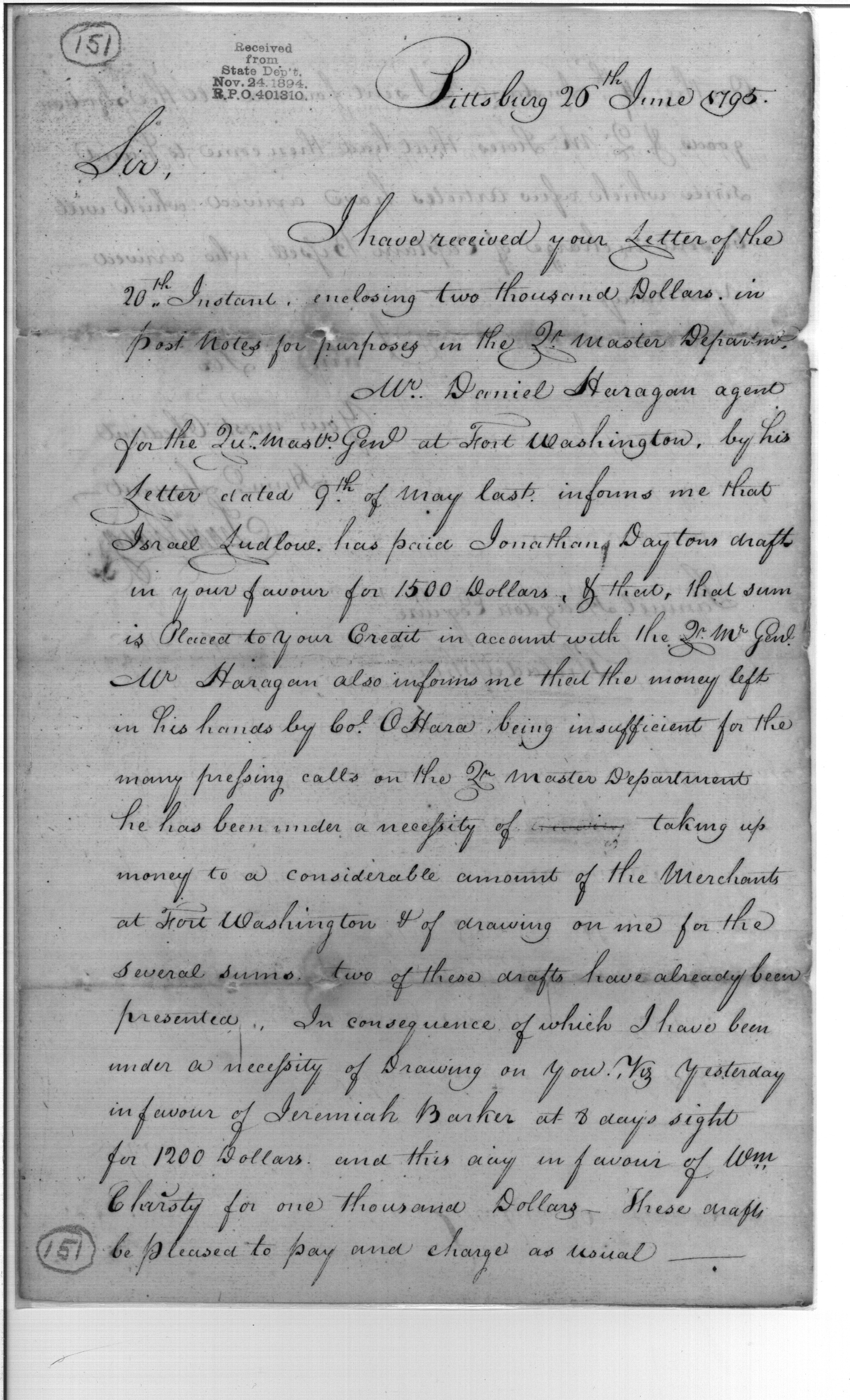 - In source: Collection: Post Revolutionary War Papers, 1784-1815. (RG94)