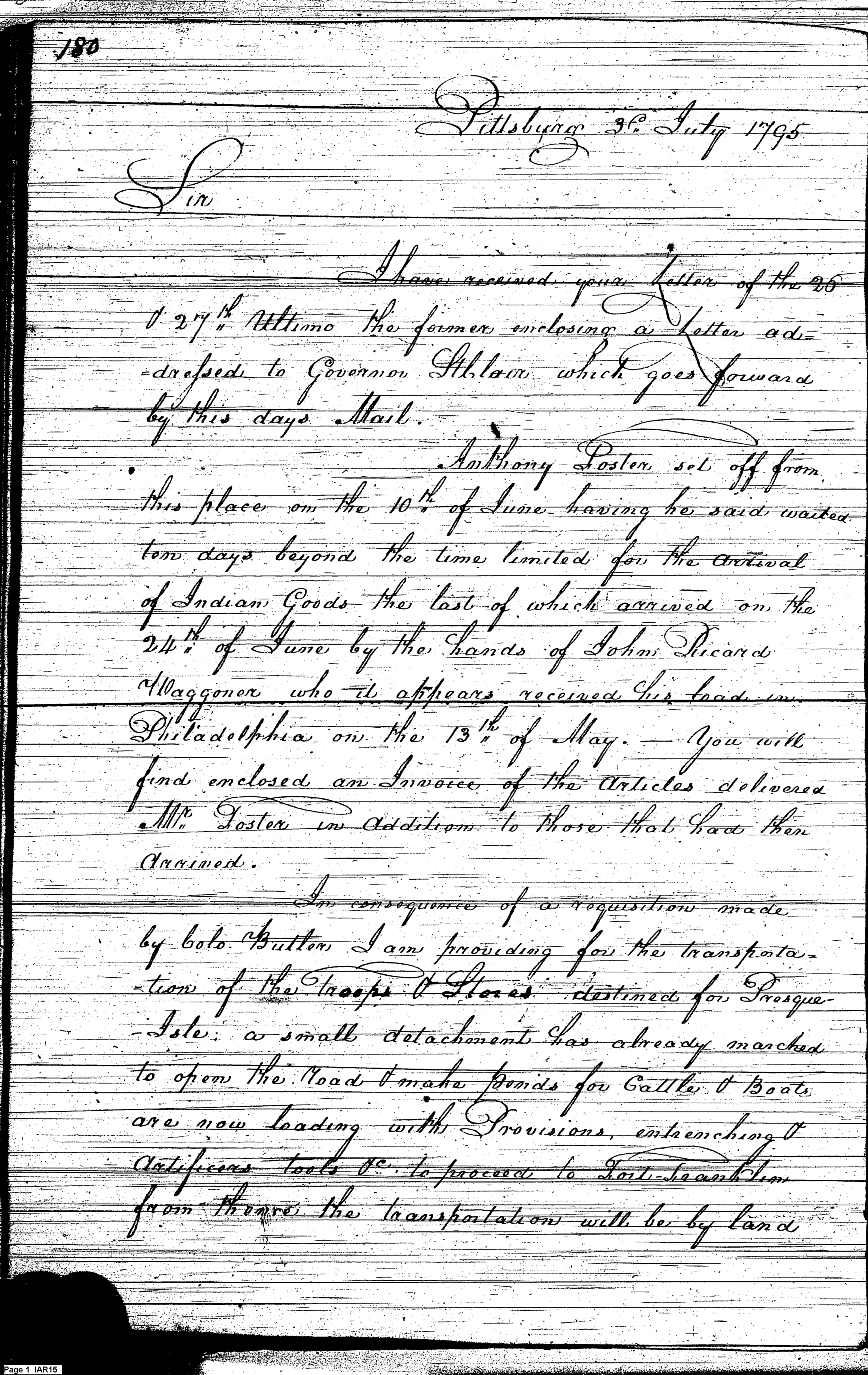 - Document: Major Craig discusses supply and logistics with Secretary Pickering