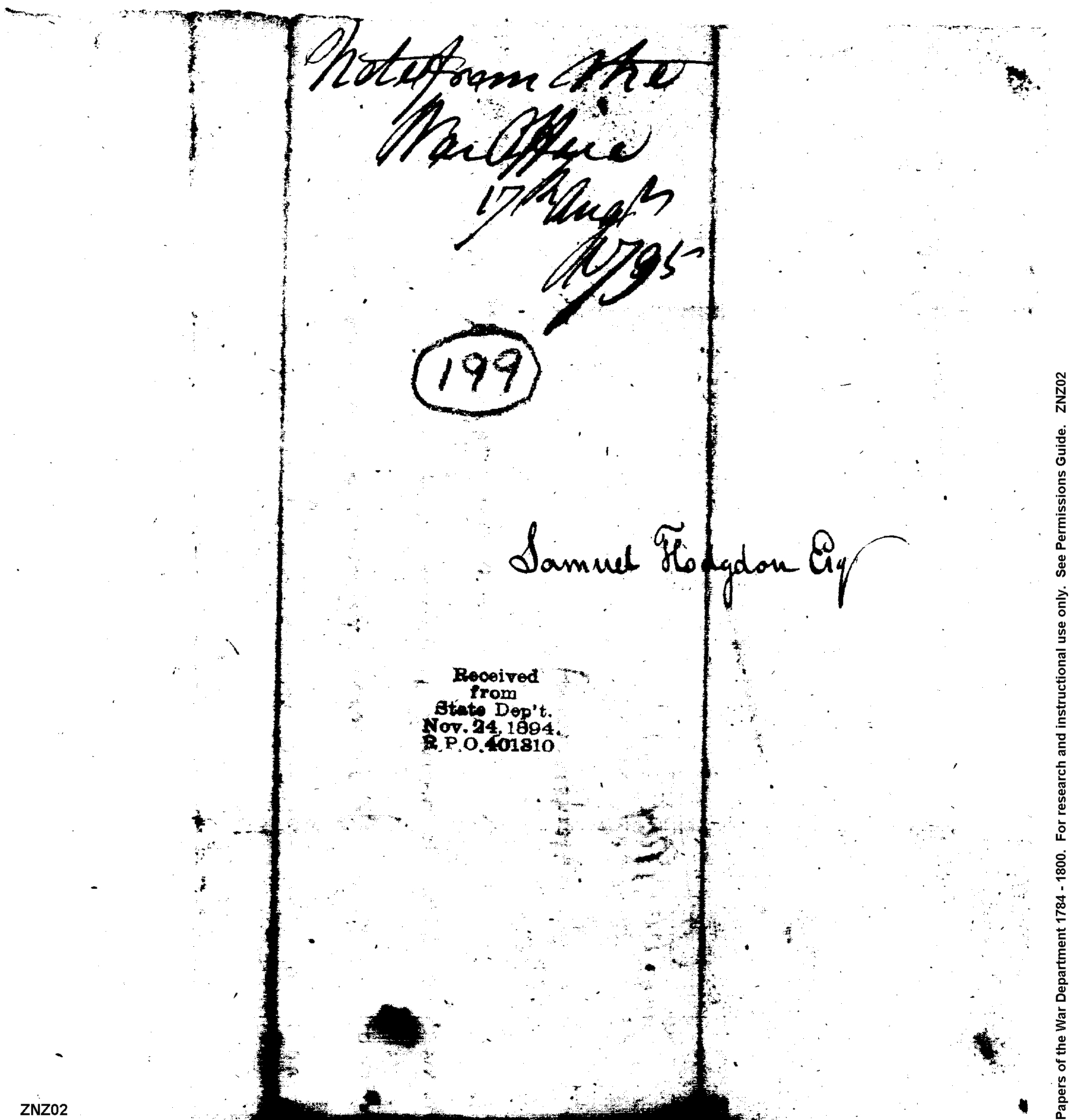 - In source: Collection: Post Revolutionary War Papers, 1784-1815. (RG94)