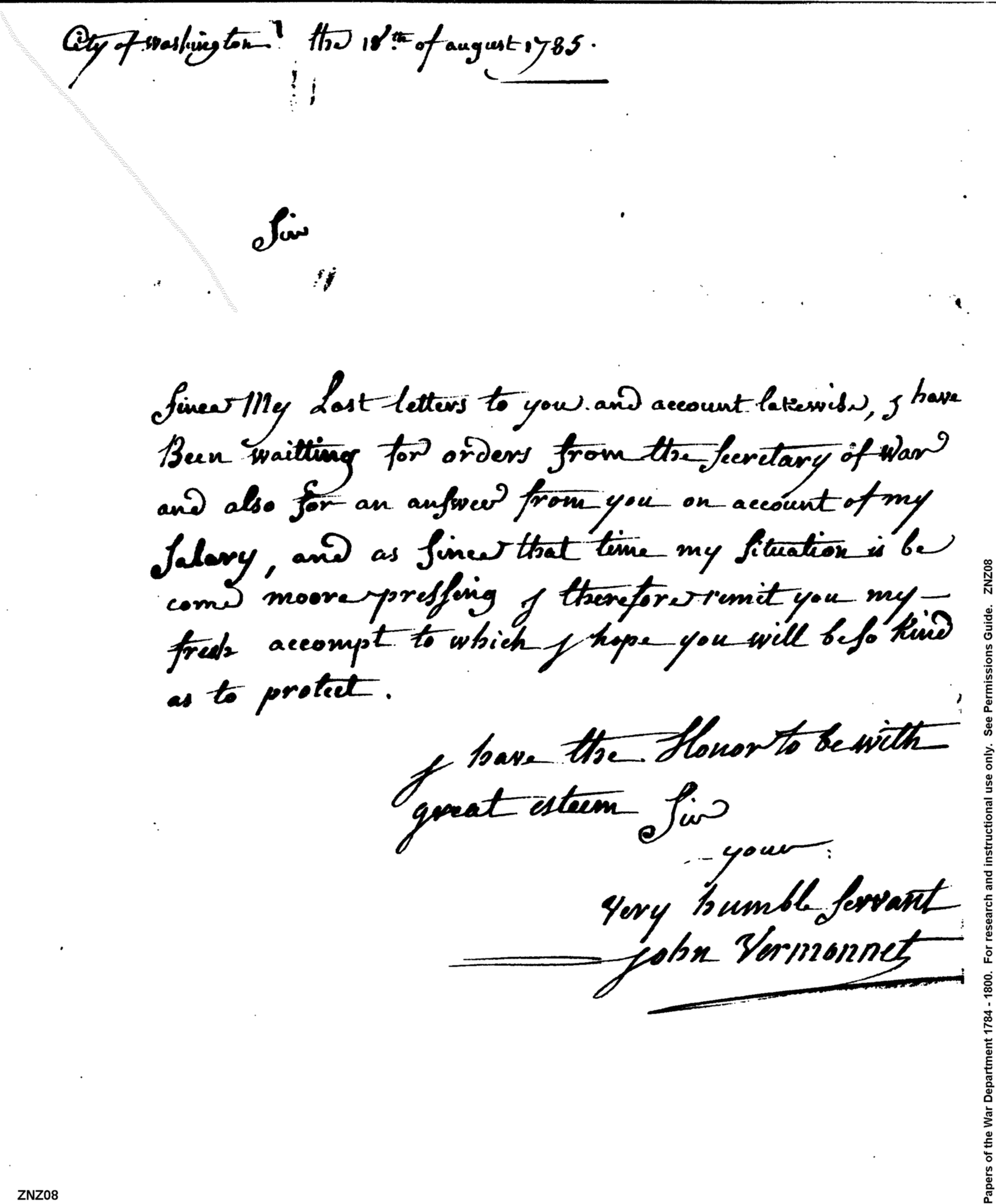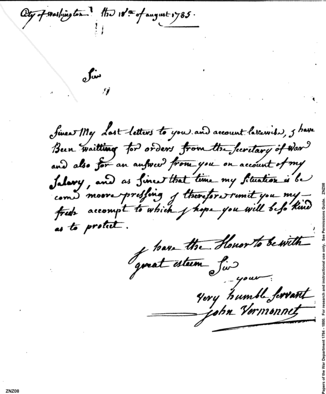 - In source: Collection: Post Revolutionary War Papers, 1784-1815. (RG94)