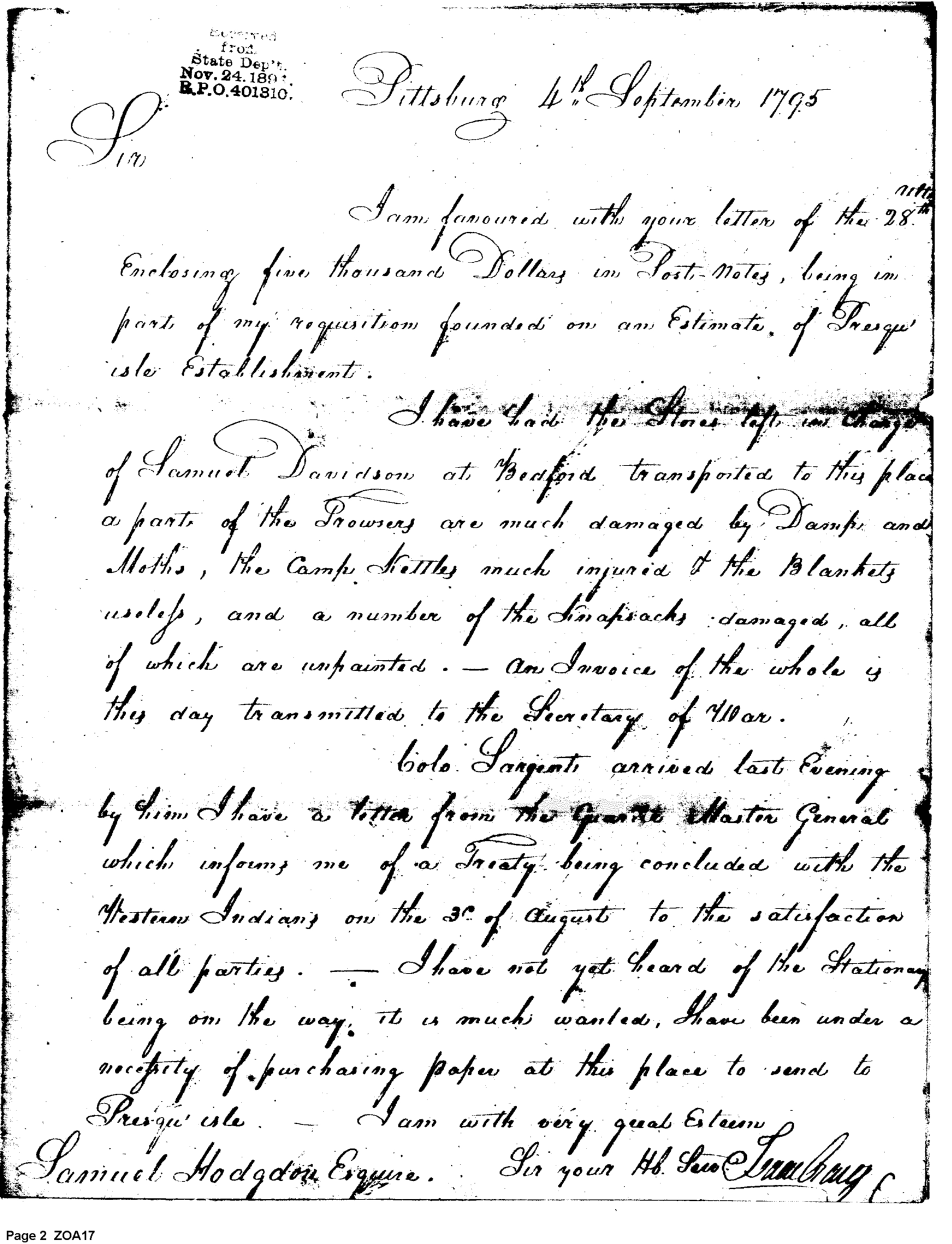 - In source: Collection: Post Revolutionary War Papers, 1784-1815. (RG94)
