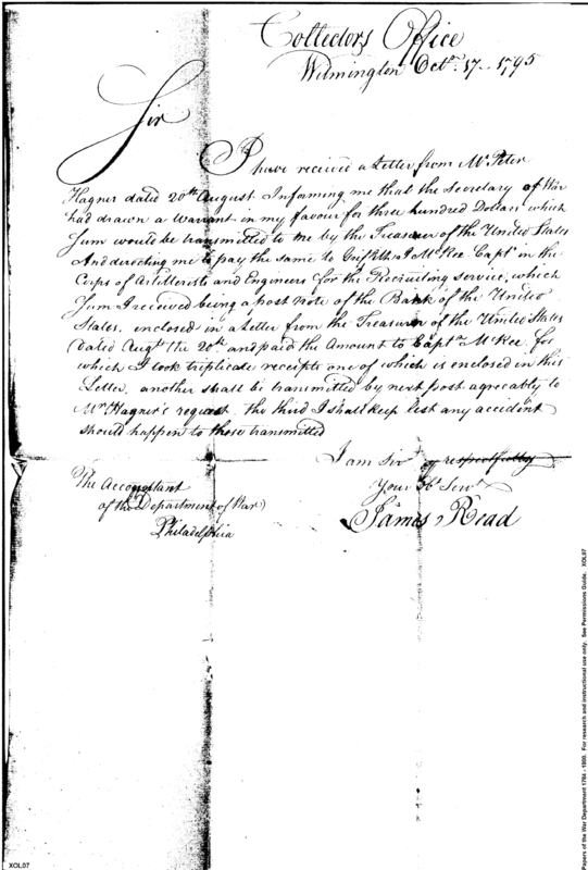 - In source: Collection: Post Revolutionary War Papers, 1784-1815. (RG94)