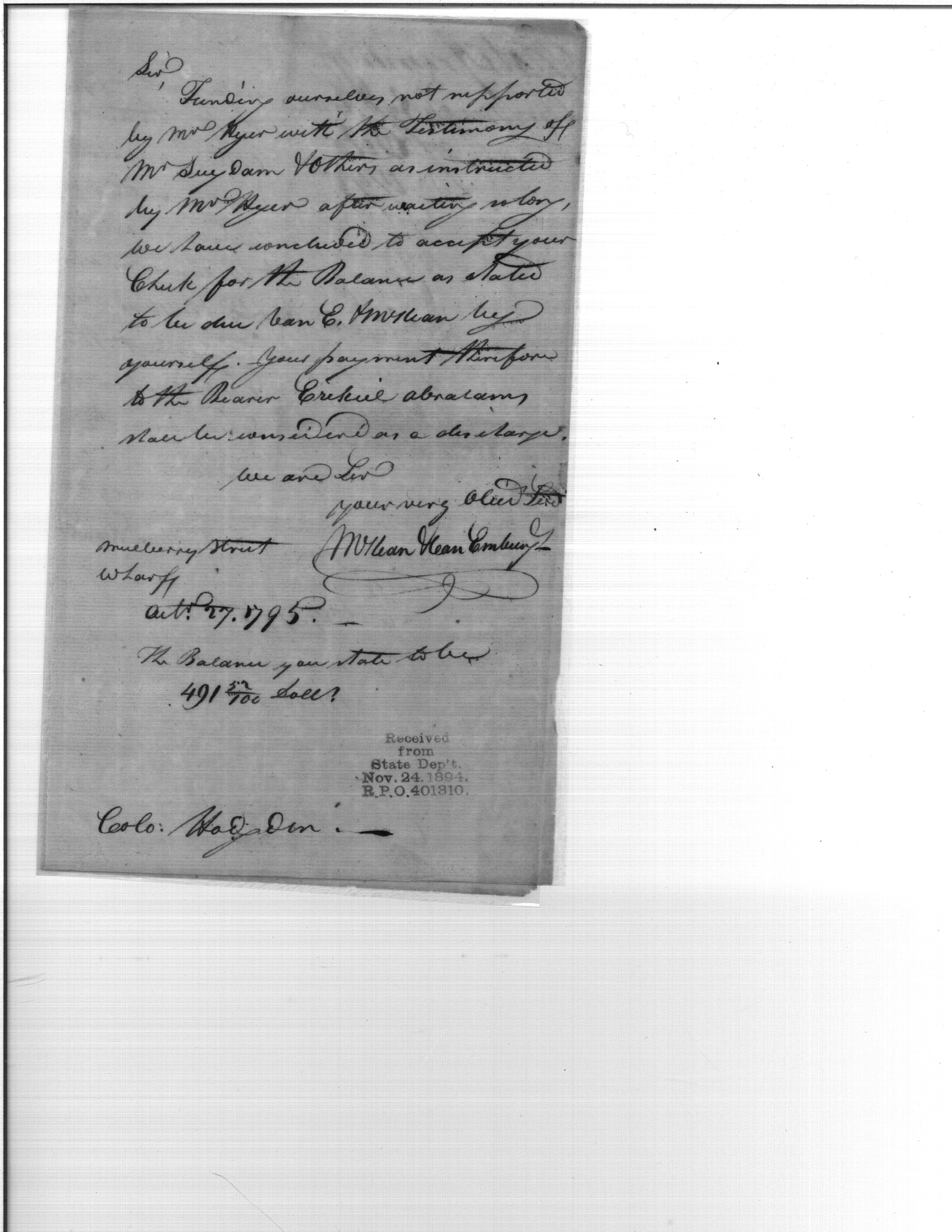 - In source: Collection: Post Revolutionary War Papers, 1784-1815. (RG94)
