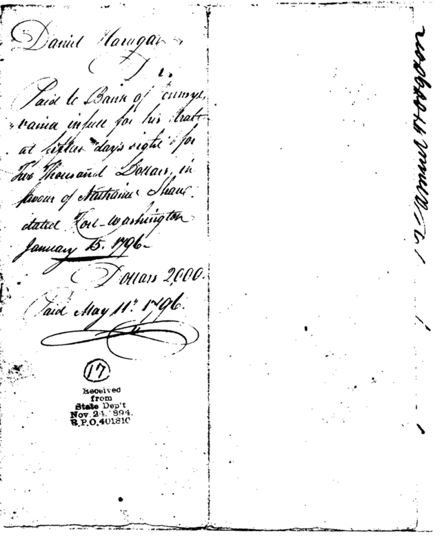 - Document: Payment to Nathaniel Shaw Assistant Quarter Master General
