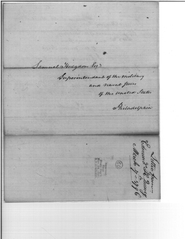 Document ViewerEdmund Quincy submission of returns for February 1796; includes Contractors' receipts from James Hackett