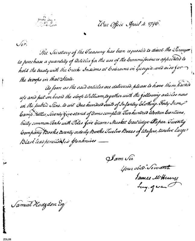 Document ViewerRequests Items for Commissioners for Treaty with Creeks
