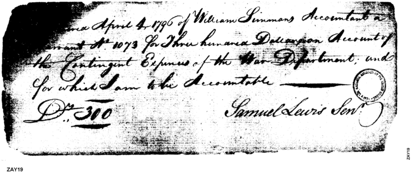 - Document: Receipt of Simmons, War Department Contingent Expenses