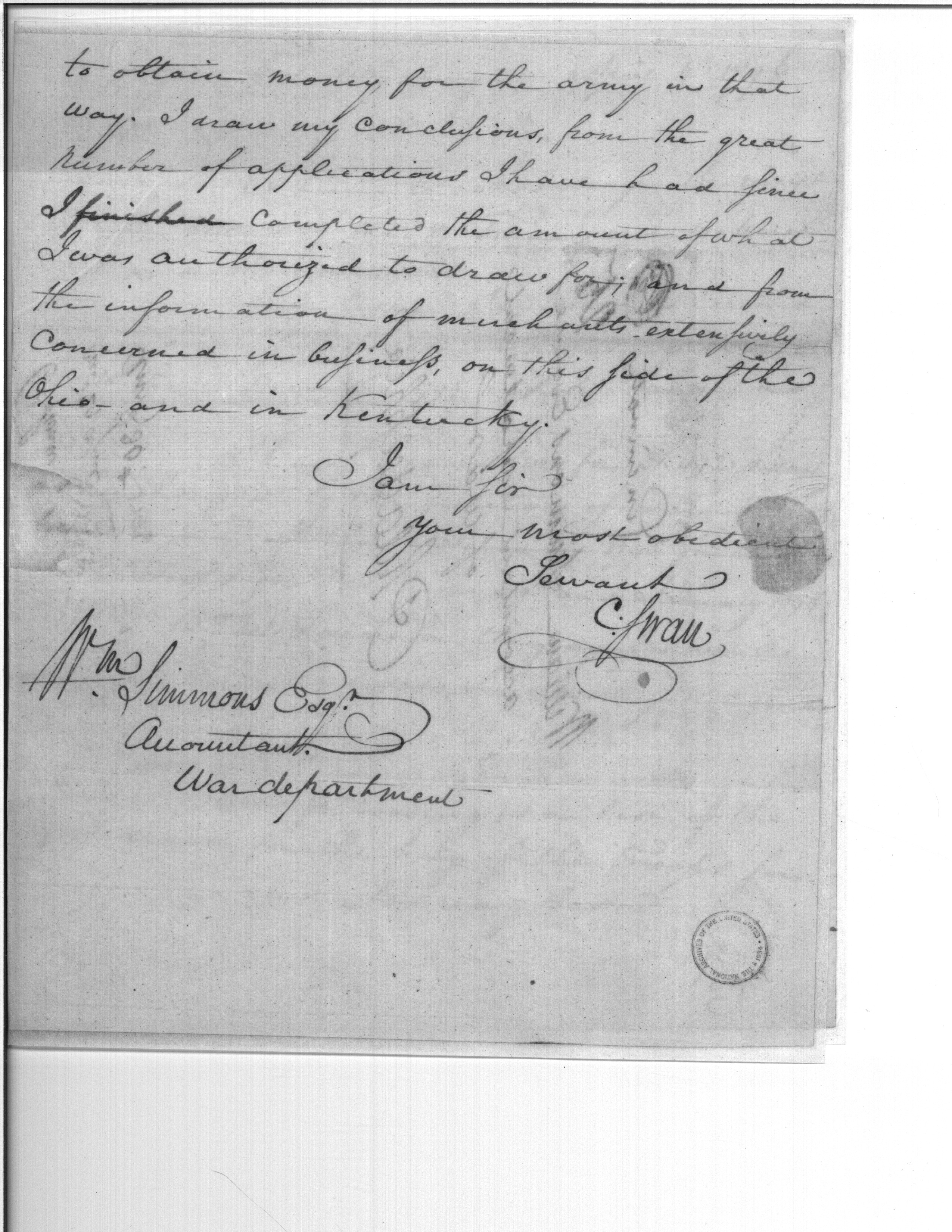 - Document: Obtaining Money for the Army, Etc.