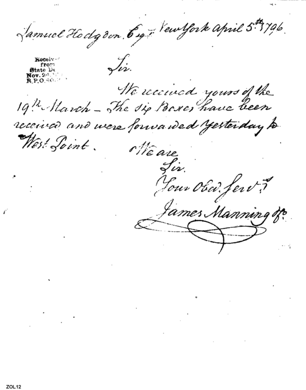 - Document: Reports Arrival of Boxes and Shipment to West Point