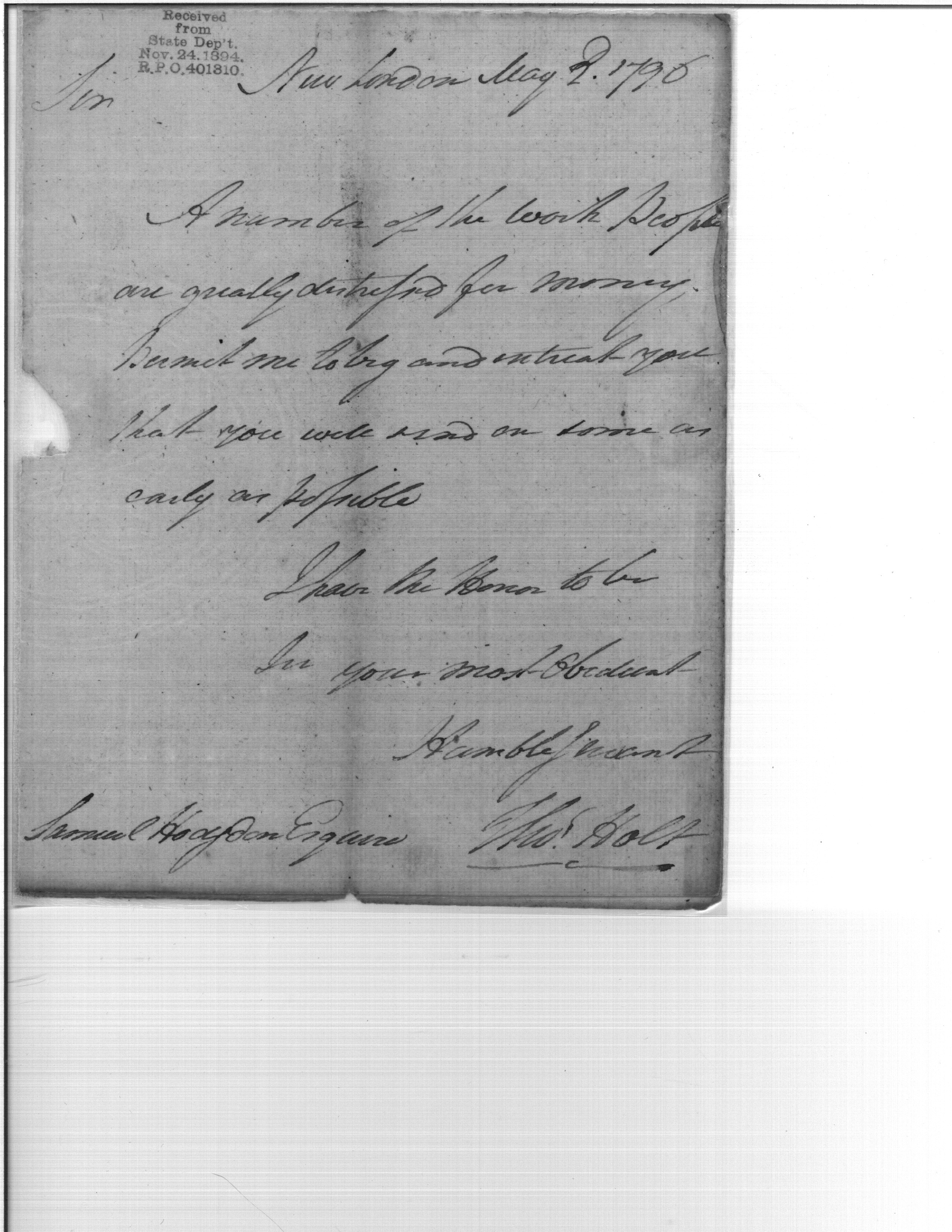- Document: Request for overdue money owed work people at New London