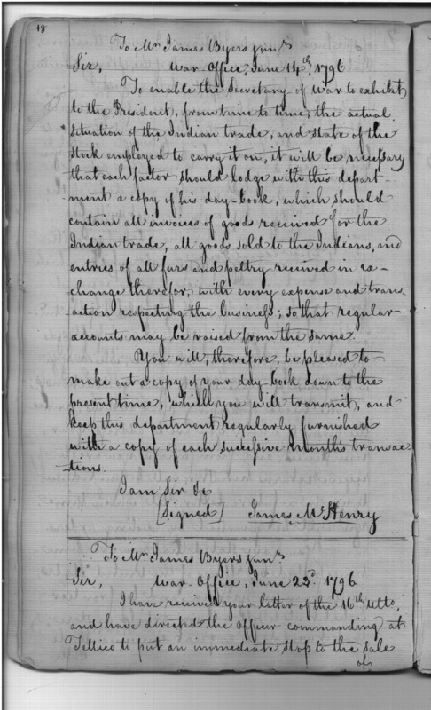 - In source: Collection: Letters Sent by the Secretary of War Relative to Indian Tribes (Letters and Instructions to the Factors of the Indian Trading Houses from their Establishment), Nov 26, 1795-Feb 27, 1800. (RG75)
