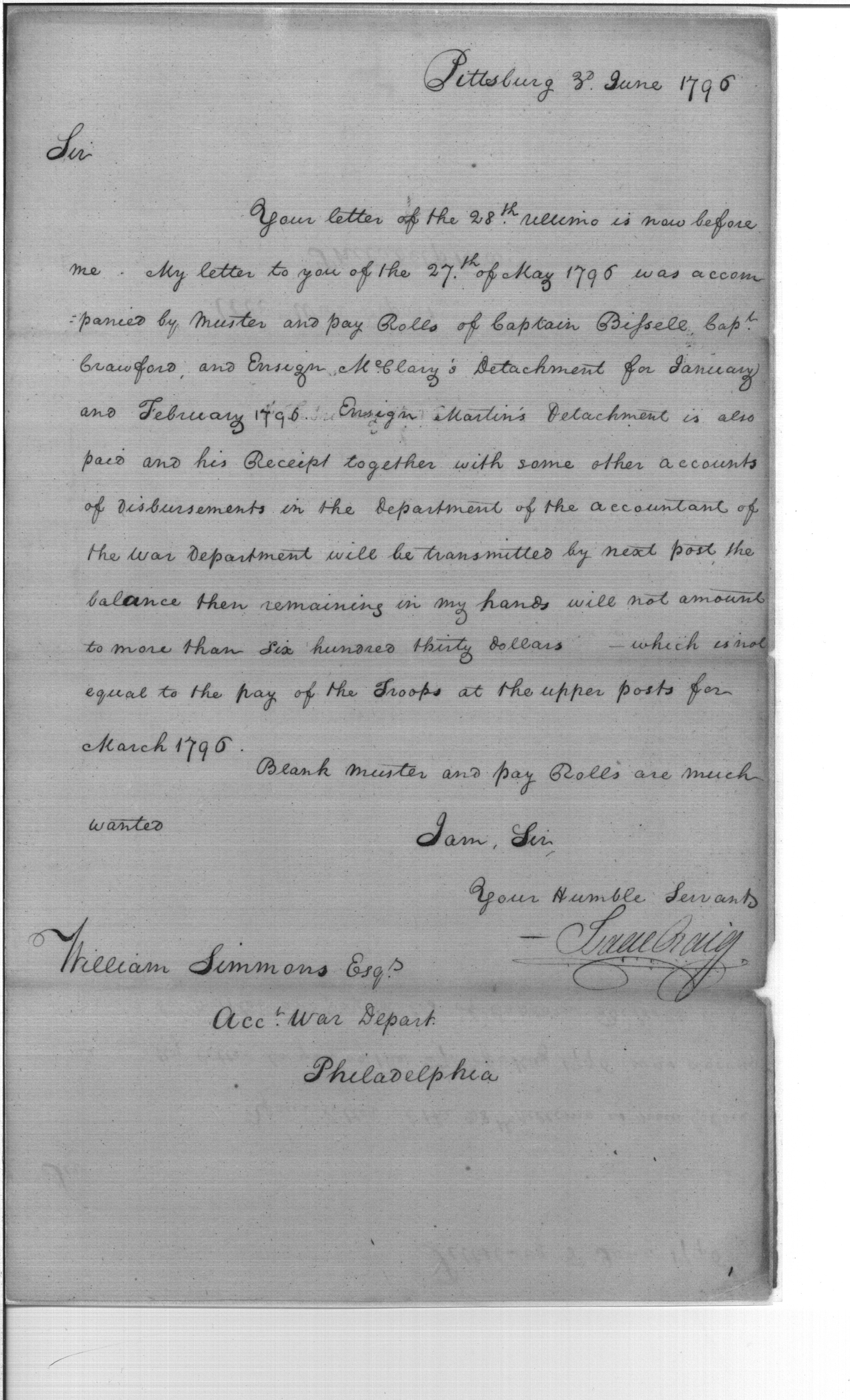 - Document: Recount of Letter Containing Muster and Pay Rolls