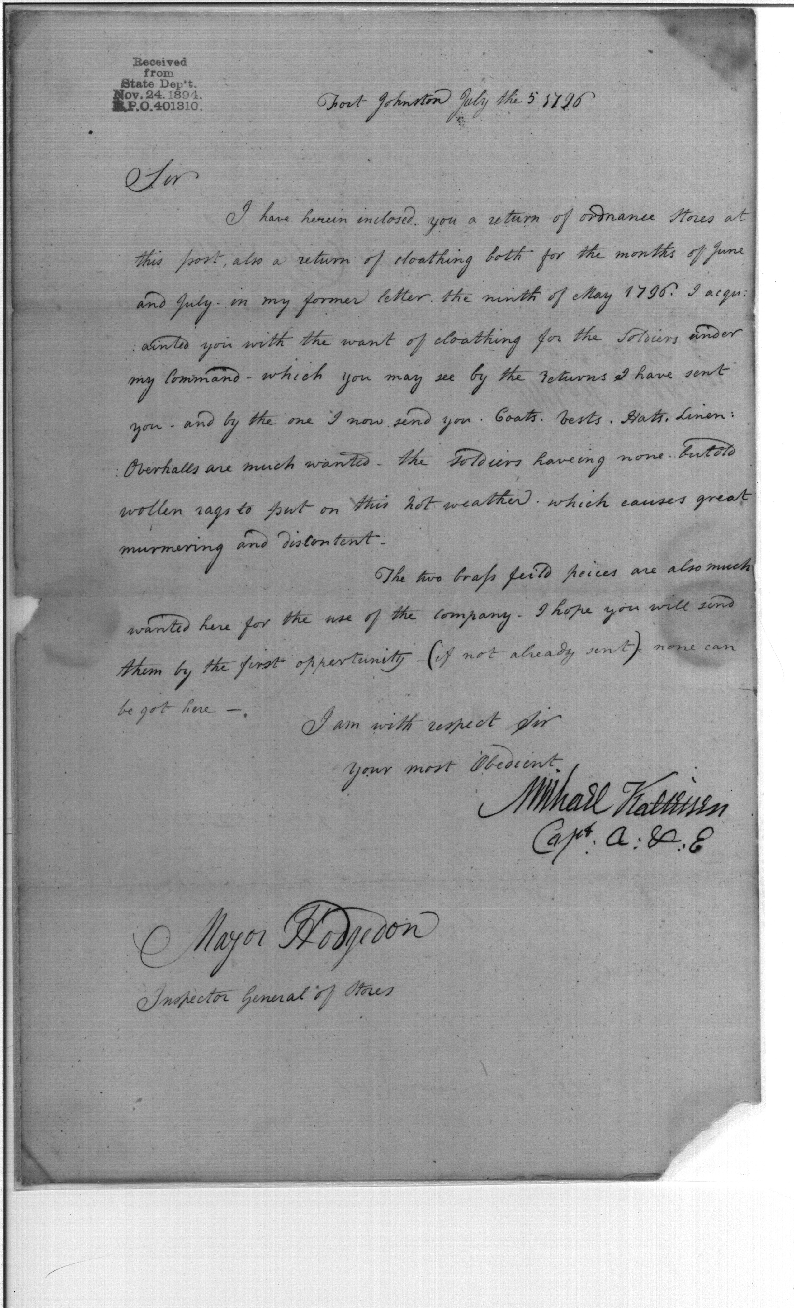 - In source: Collection: Post Revolutionary War Papers, 1784-1815. (RG94)
