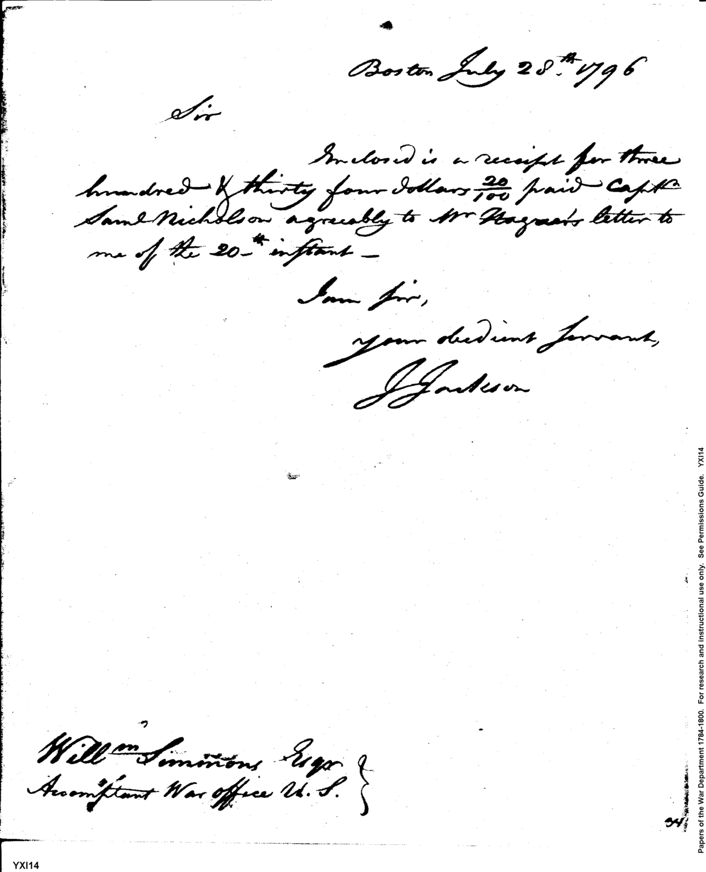 - Document: Enclosed Receipt for Capt. Samuel Nicholson