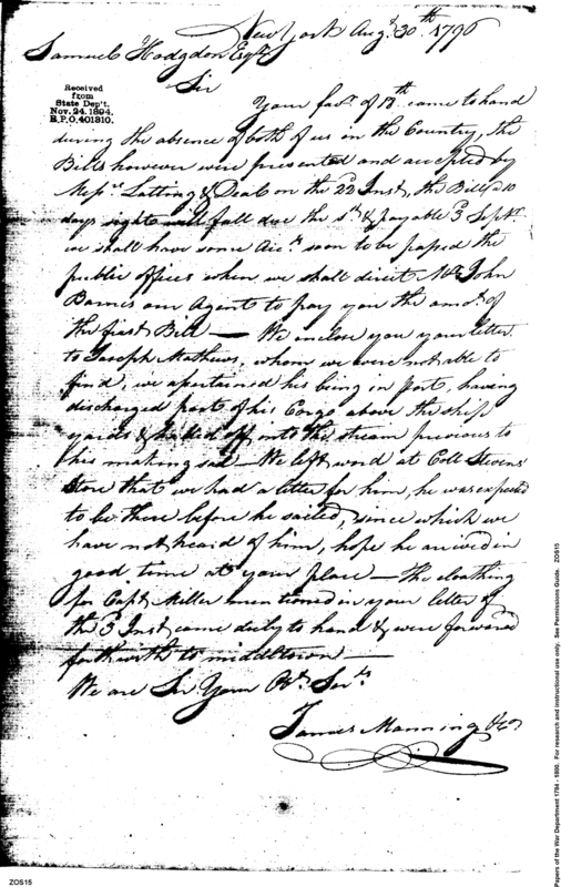 - In source: Collection: Post Revolutionary War Papers, 1784-1815. (RG94)