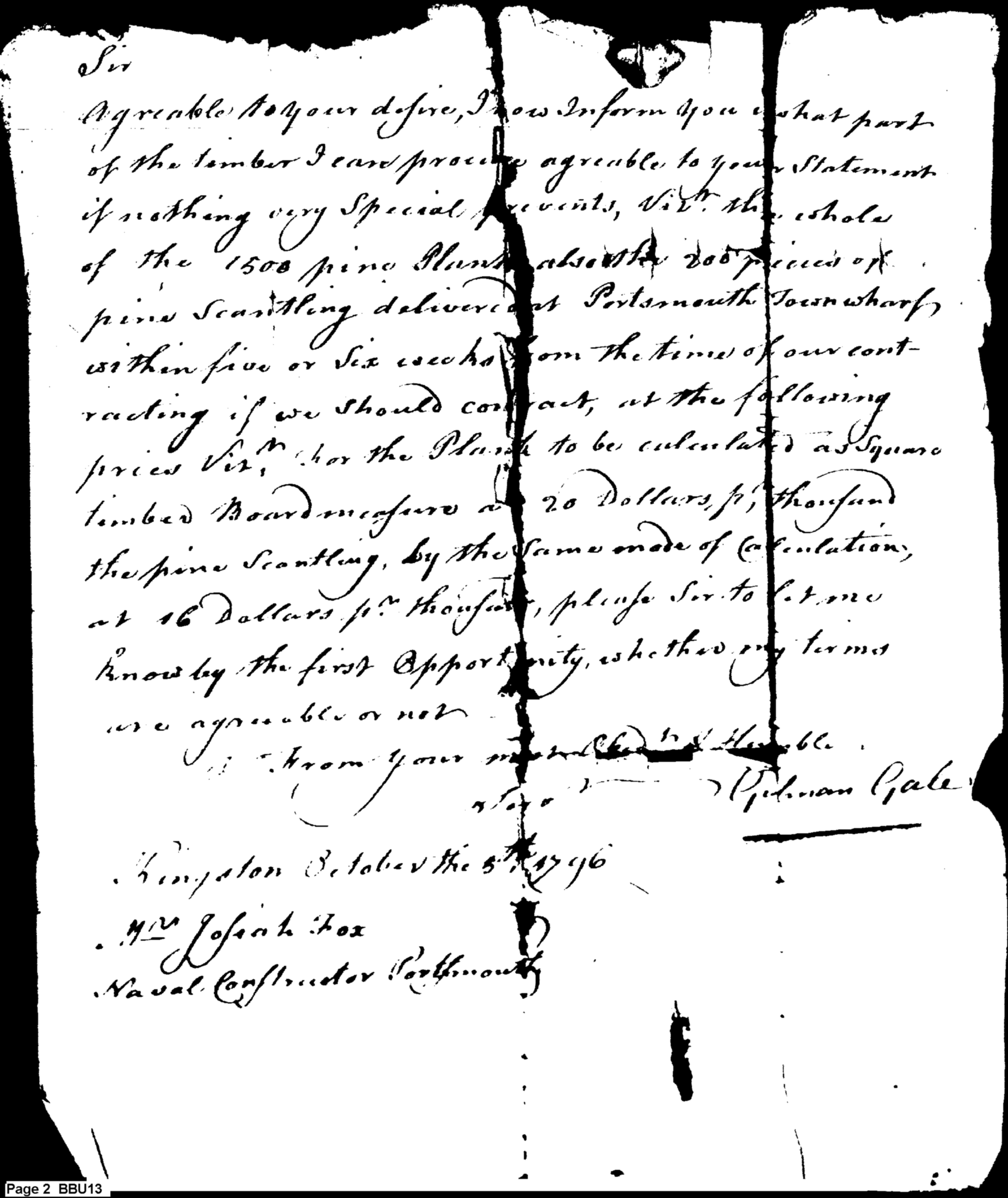 - Document: Discussion of Pine Planks for Frigate, & Contract for the Same
