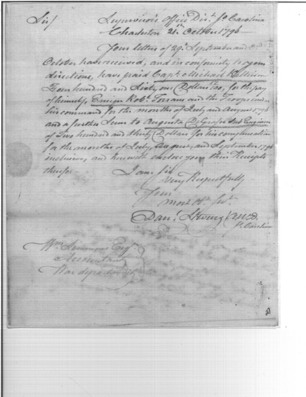 - Document: Pay of Capt. Kalteisen's troops and Augusta DeGrasse