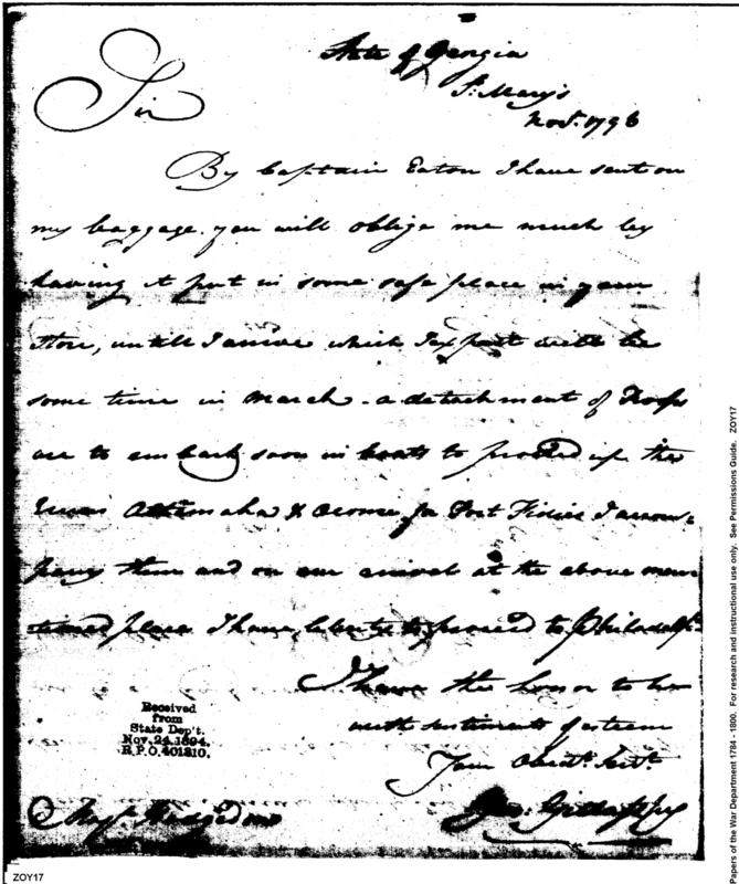 - In source: Collection: Post Revolutionary War Papers, 1784-1815. (RG94)