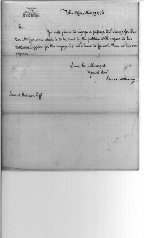 - Document: Passage to St. Marys for Doctor McCrea