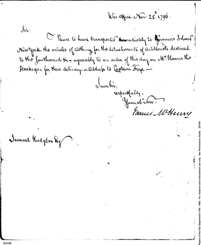 - In source: Collection: Post Revolutionary War Papers, 1784-1815. (RG94)