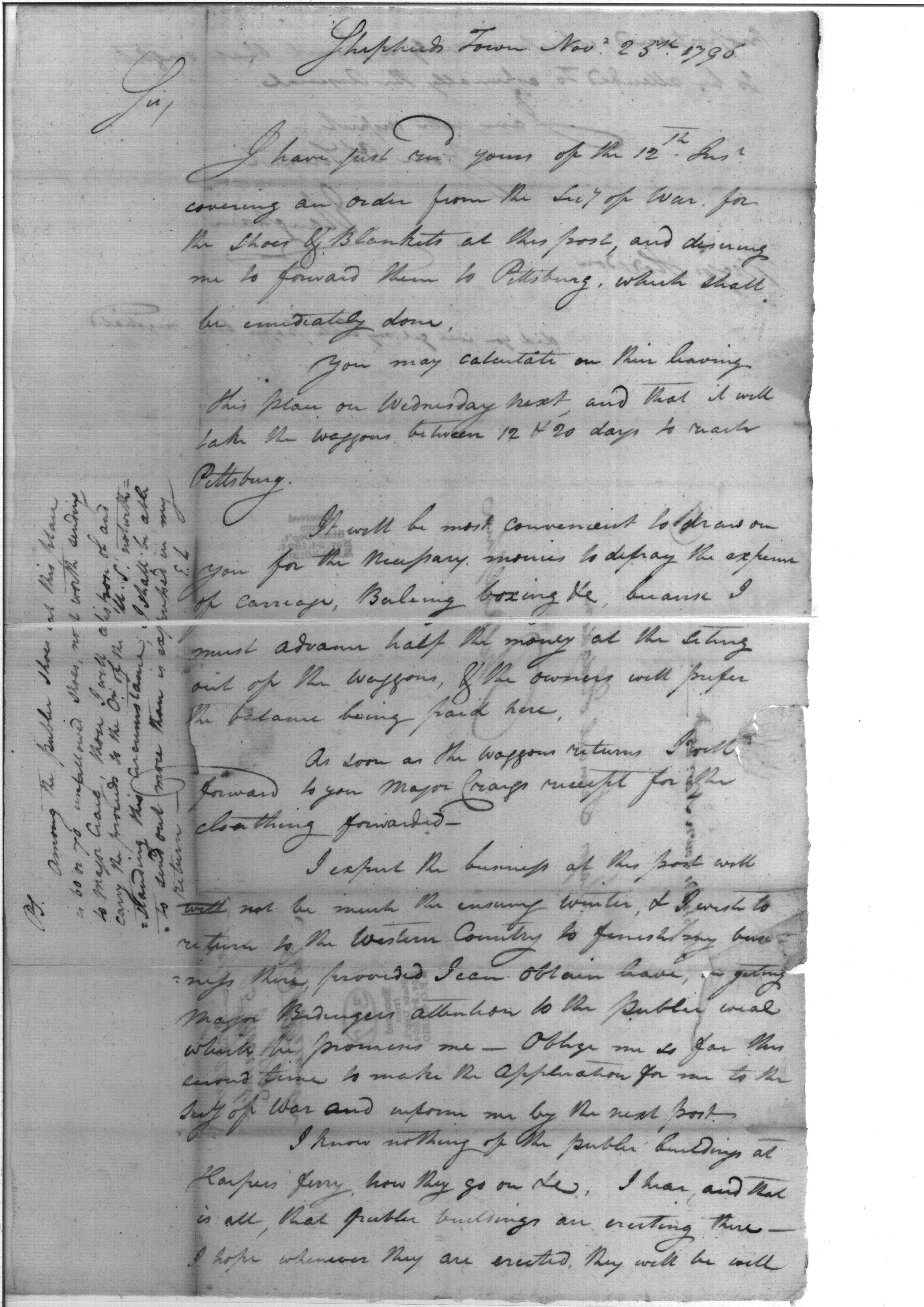 - Document: Shoes & Blankets to be Forwarded to Pittsburgh, Etc.