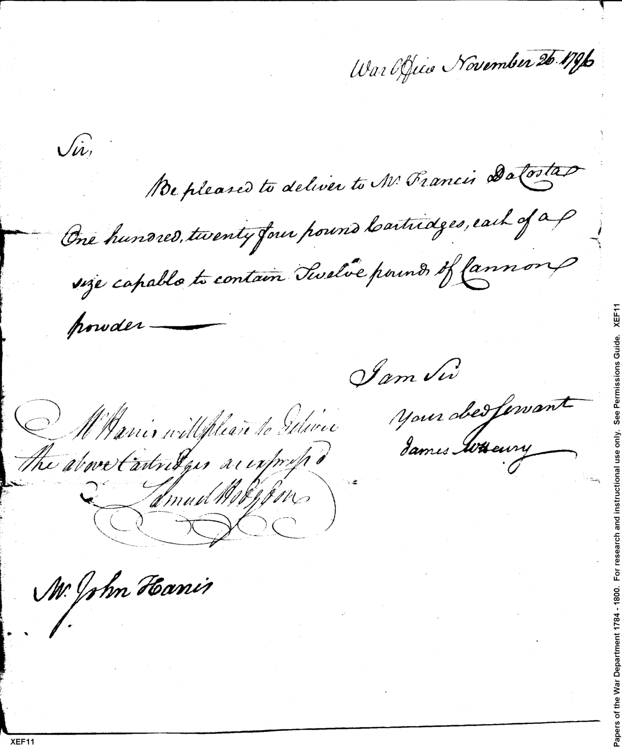 - In source: Collection: Correspondence, Reports, Returns, Bills, Accounts Current' Statements, Receipts, Vouchers and Contracts of Philadelphia Supply Agencies (Coxe and Irvine Papers), 1794-1842. (RG92)